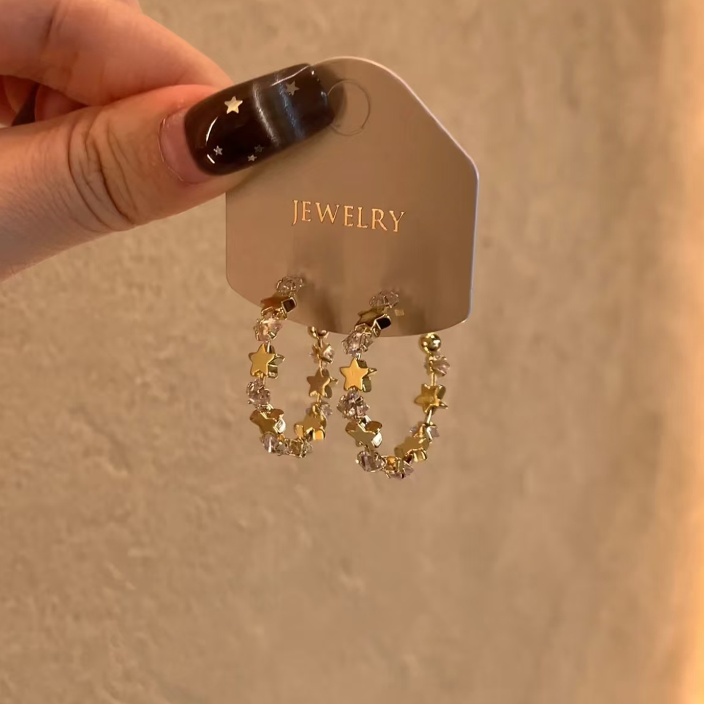 超闪金色星星圆圈耳钉女2025新款爆款时尚气质耳环轻奢高级感耳饰