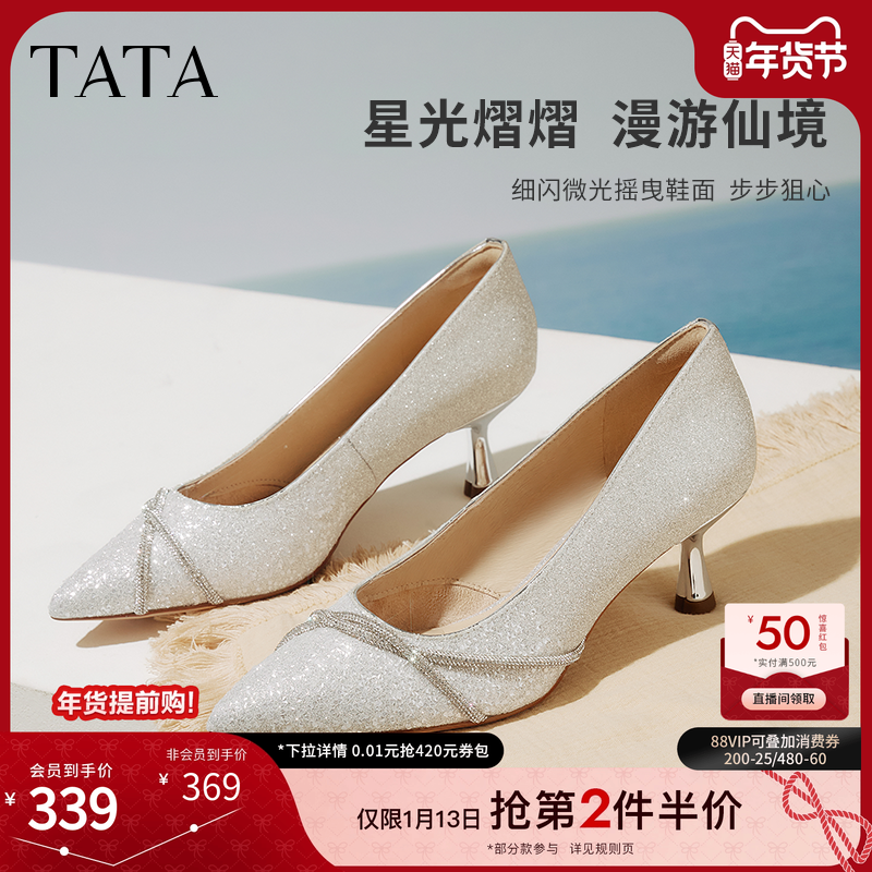 TATA他她尖头高跟鞋女细跟婚鞋新娘鞋伴娘鞋2025浅口单鞋7QT08AQ5