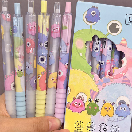 小怪兽家族中性笔ins风高颜值ST速干刷题笔可爱按动笔学生考试笔