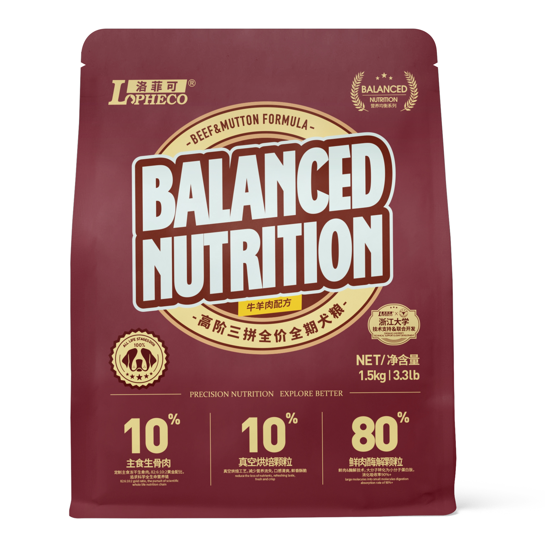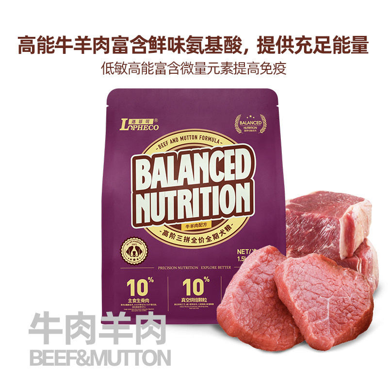 洛菲可营养+系列牛羊肉犬粮烘焙粮冻干三拼3斤装营养美长1.5kg
