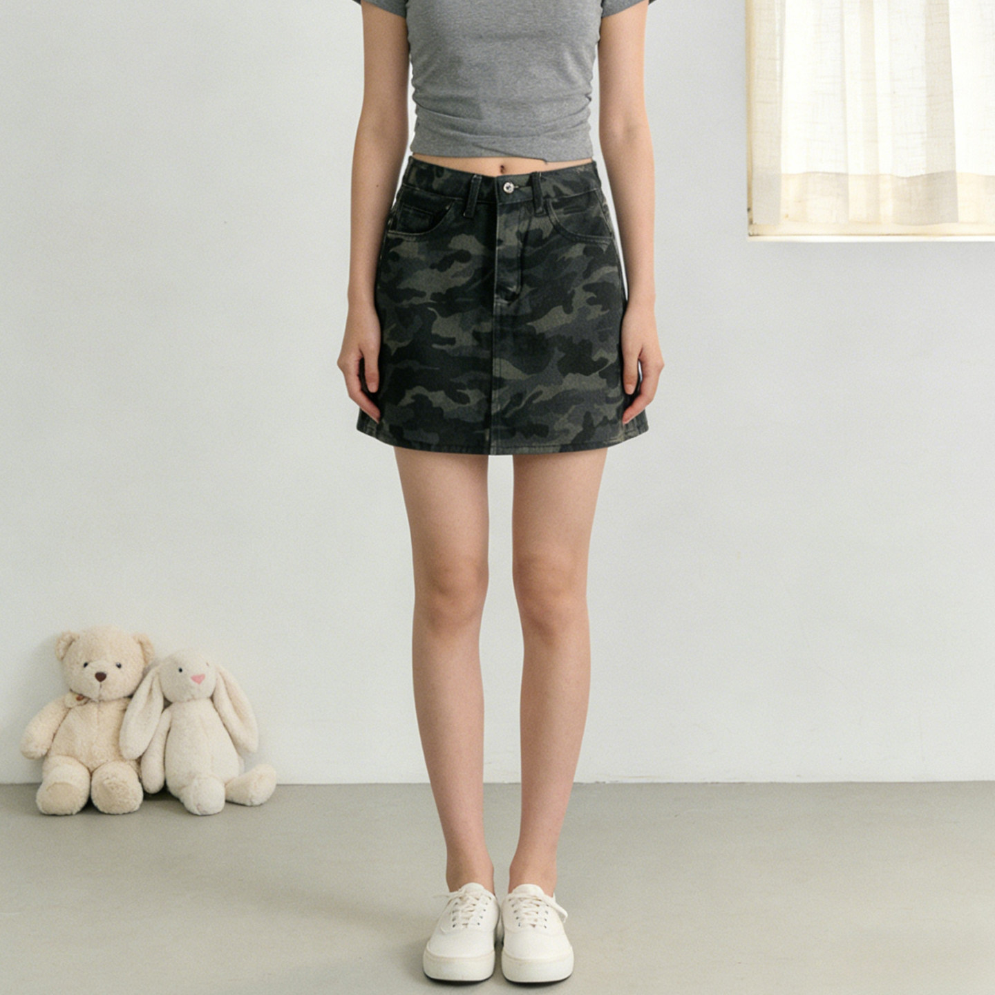夏季大码迷彩高腰A字牛仔工装裙