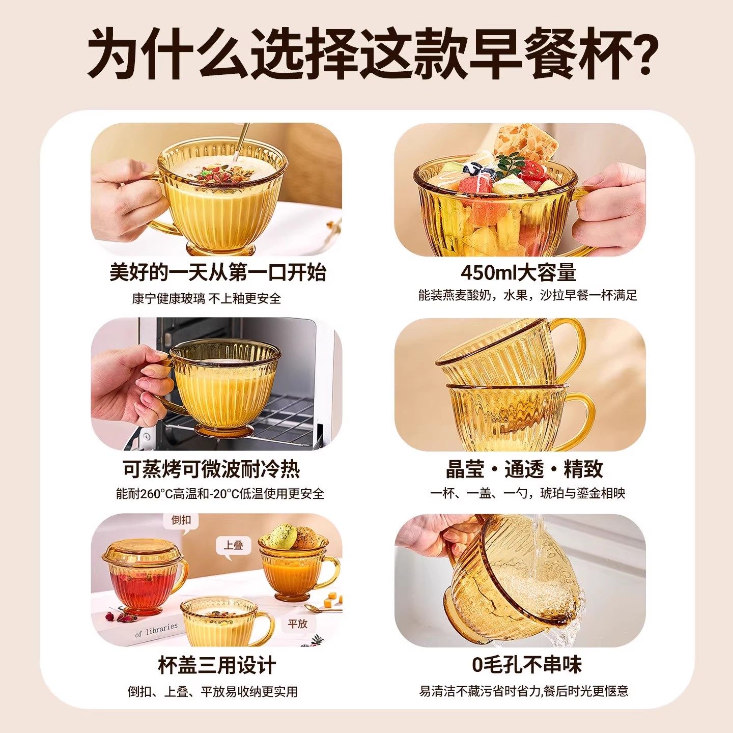 康宁玻璃早餐杯女耐高温微波炉加热专用餐具燕麦牛奶咖啡茶水杯子