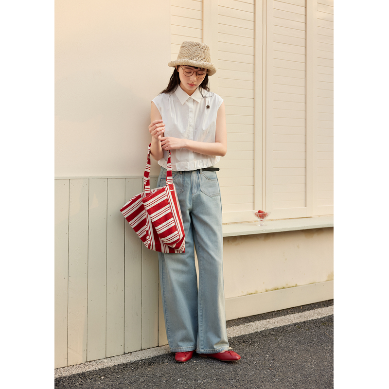 紫涵微褶肌理感无袖衬衫女2025年夏季新款设计感简约休闲白色上衣