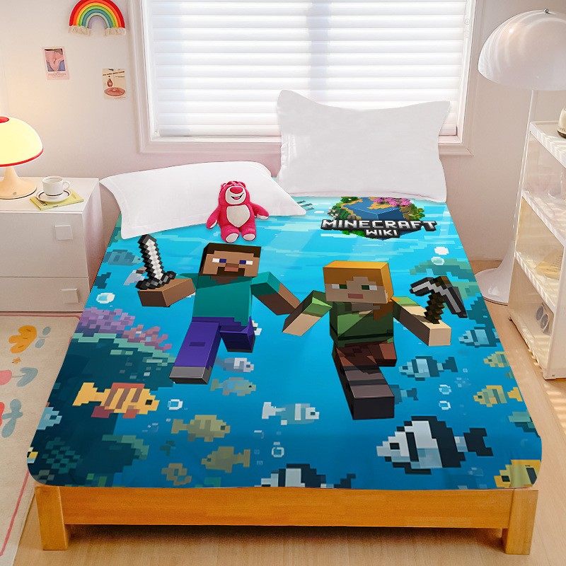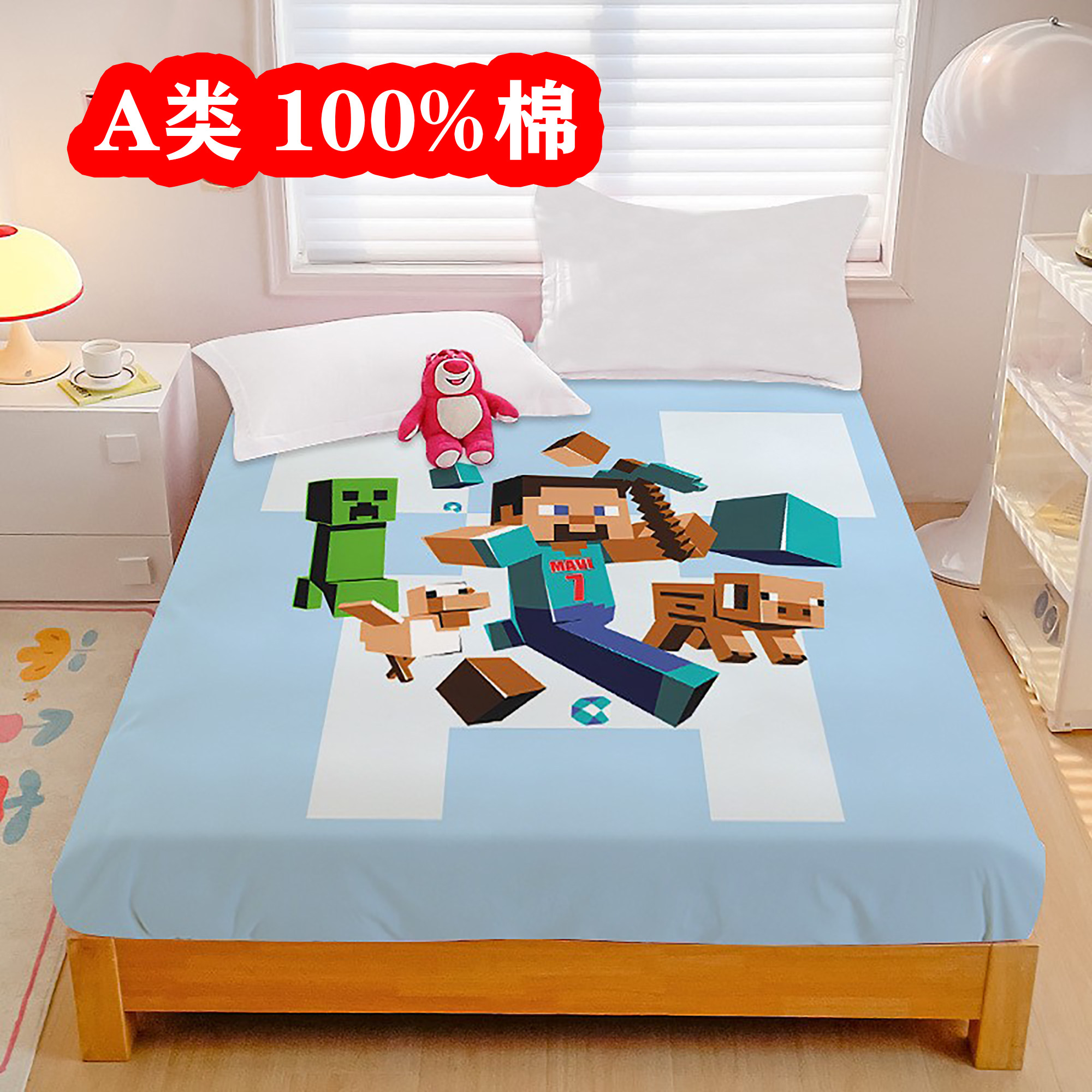 我的世界全棉床笠卡通史蒂夫纯棉儿童学生宿舍床垫保护罩0.9米1.2
