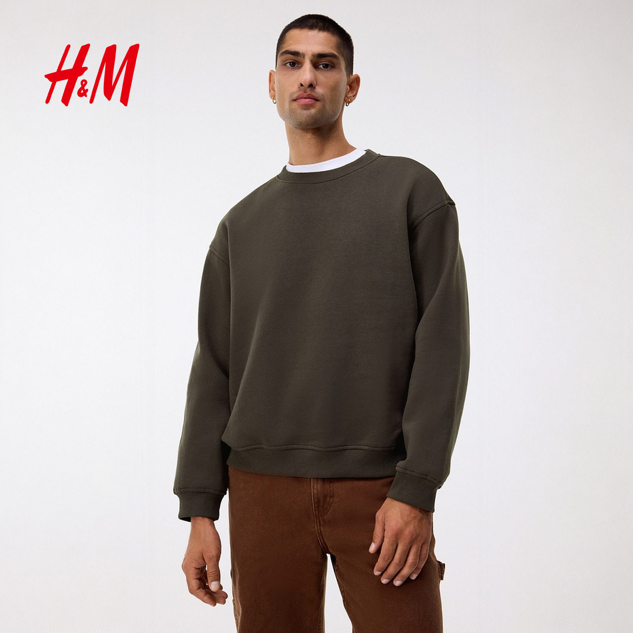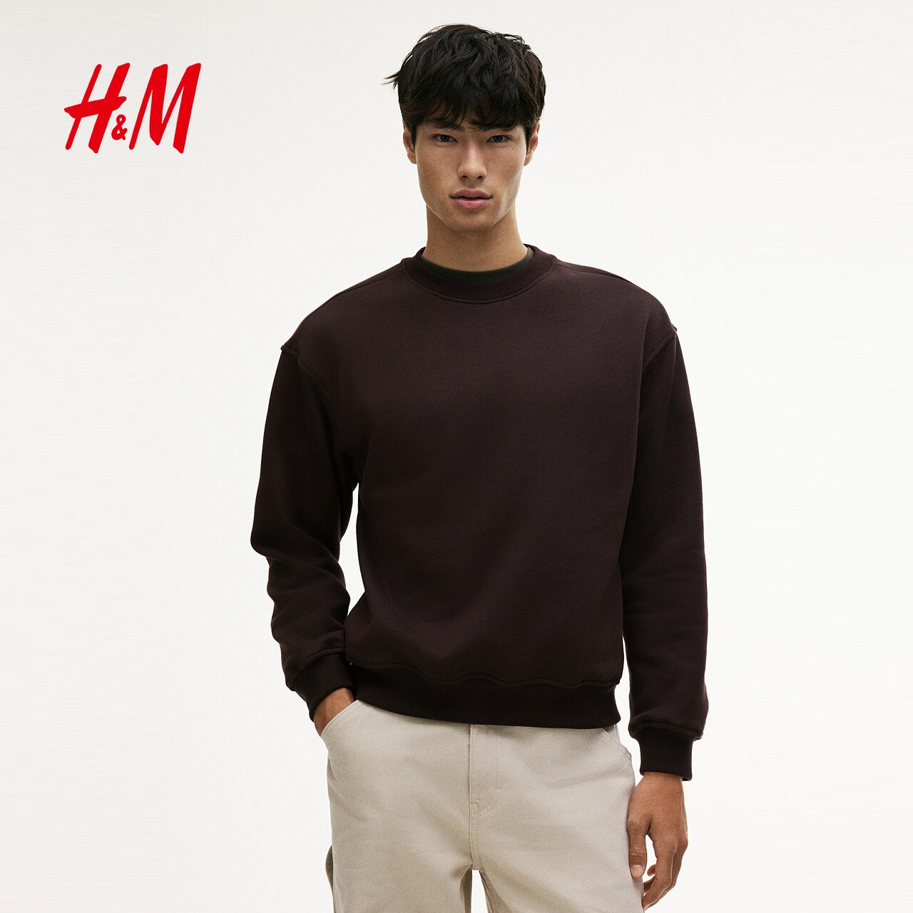 HM男装女装卫衣春季落肩宽松红色新年本命年加绒情侣上衣1308076