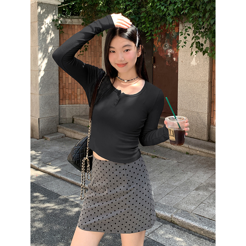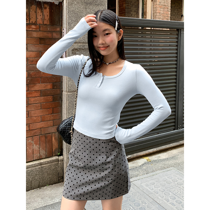KHV真维斯u领内搭打底衫女秋季长袖t恤2025新款修身短款针织上衣