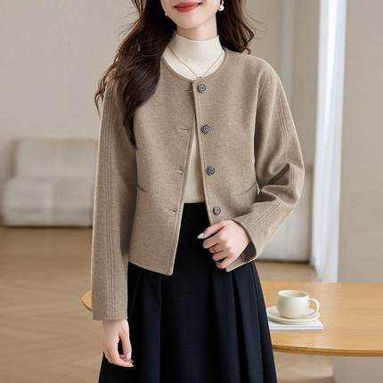 高级感毛呢外套ZJIN8282女领短款气年新款秋小冬个子质洋气圆呢子