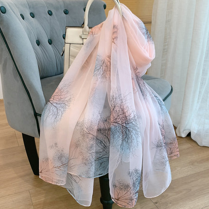 2025新款仿真丝丝巾女春秋冬季保暖百搭长款纱巾超大薄款披肩围巾