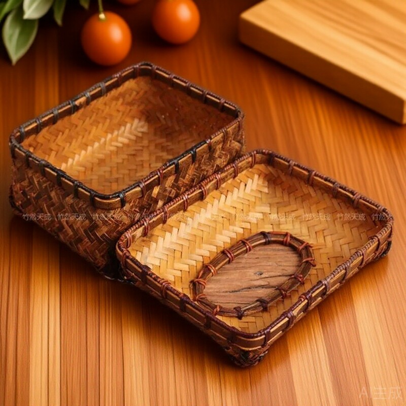 竹编纸巾盒抽纸盒紫竹新中式纸巾盒客厅高级竹子日式复古纸巾盒