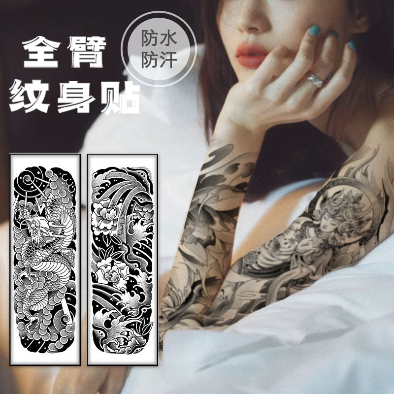 花臂纹身贴女防水持久手臂男草本大面积全臂果汁仿真刺青不反光