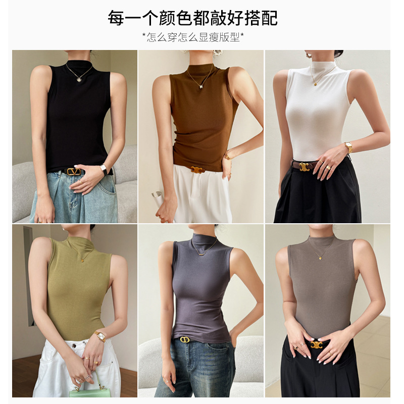 白色法式吊带背心女宽松圆领工字无袖上衣外穿内搭打底衫春夏