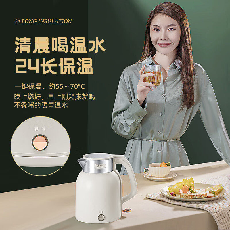 爱仕达电热水壶保温2L大容量304不锈钢烧水壶恒温壶复古煮水壶