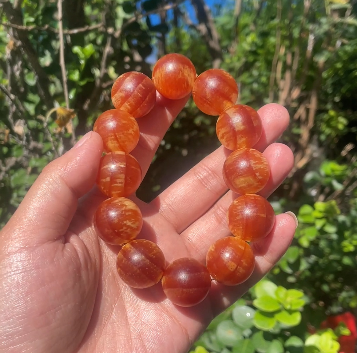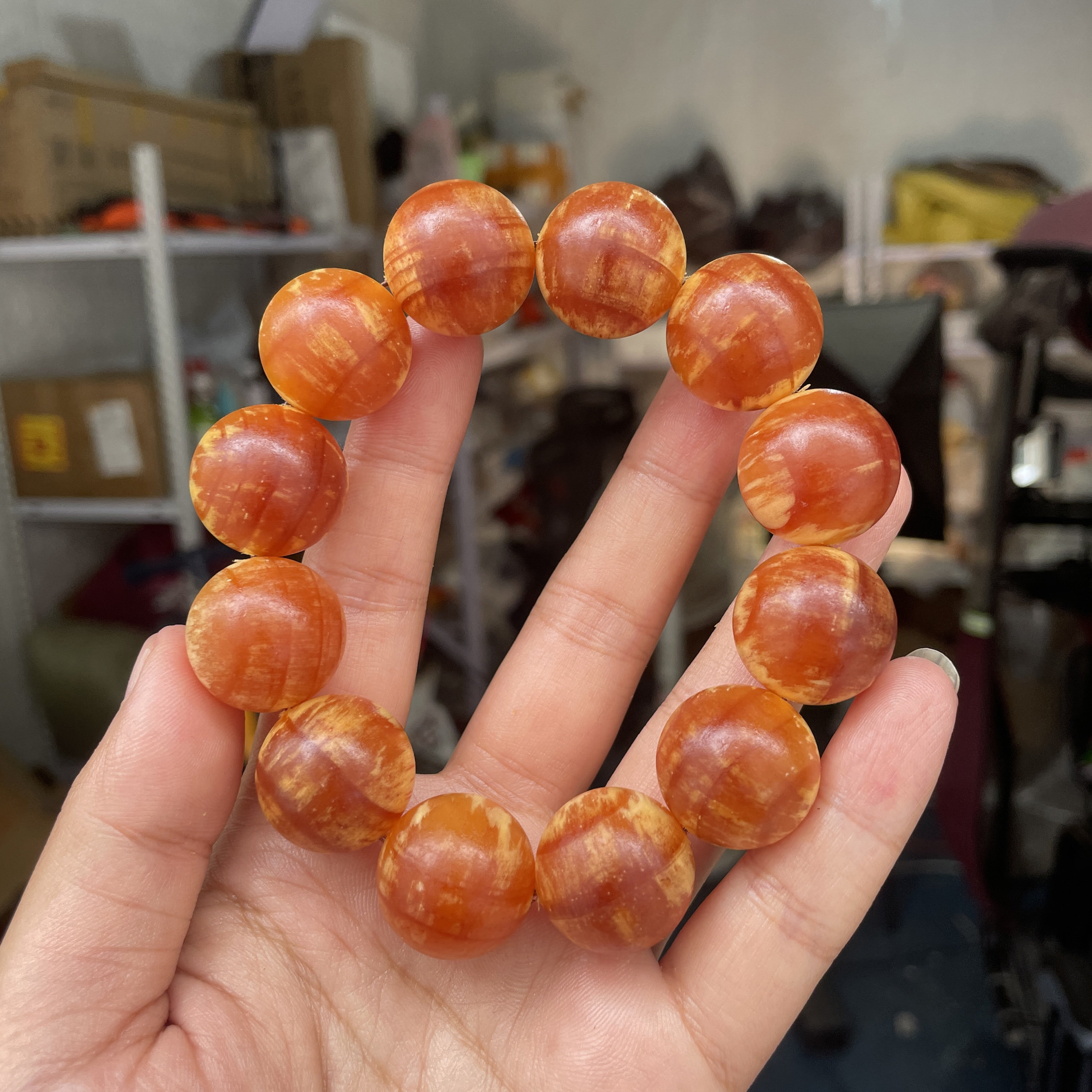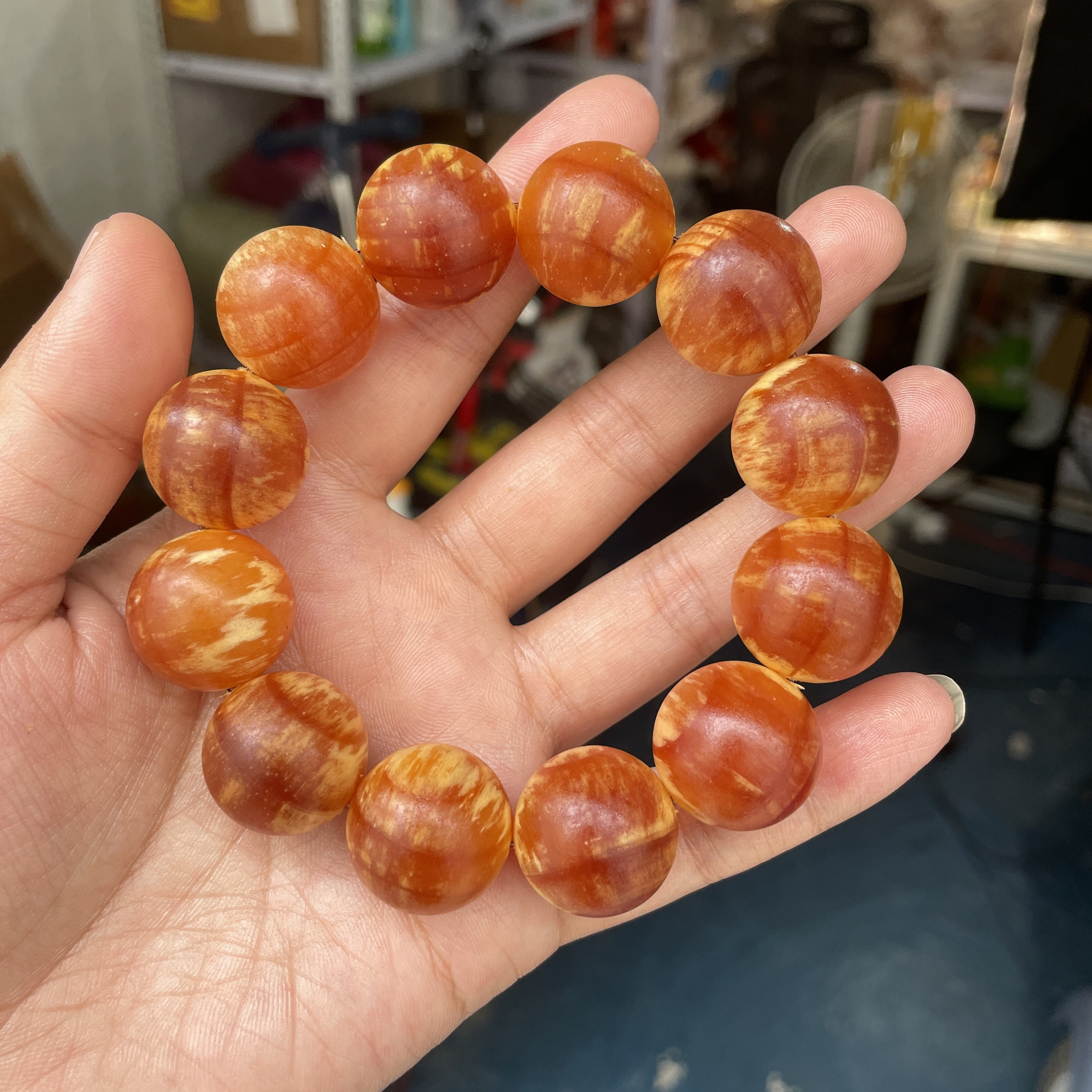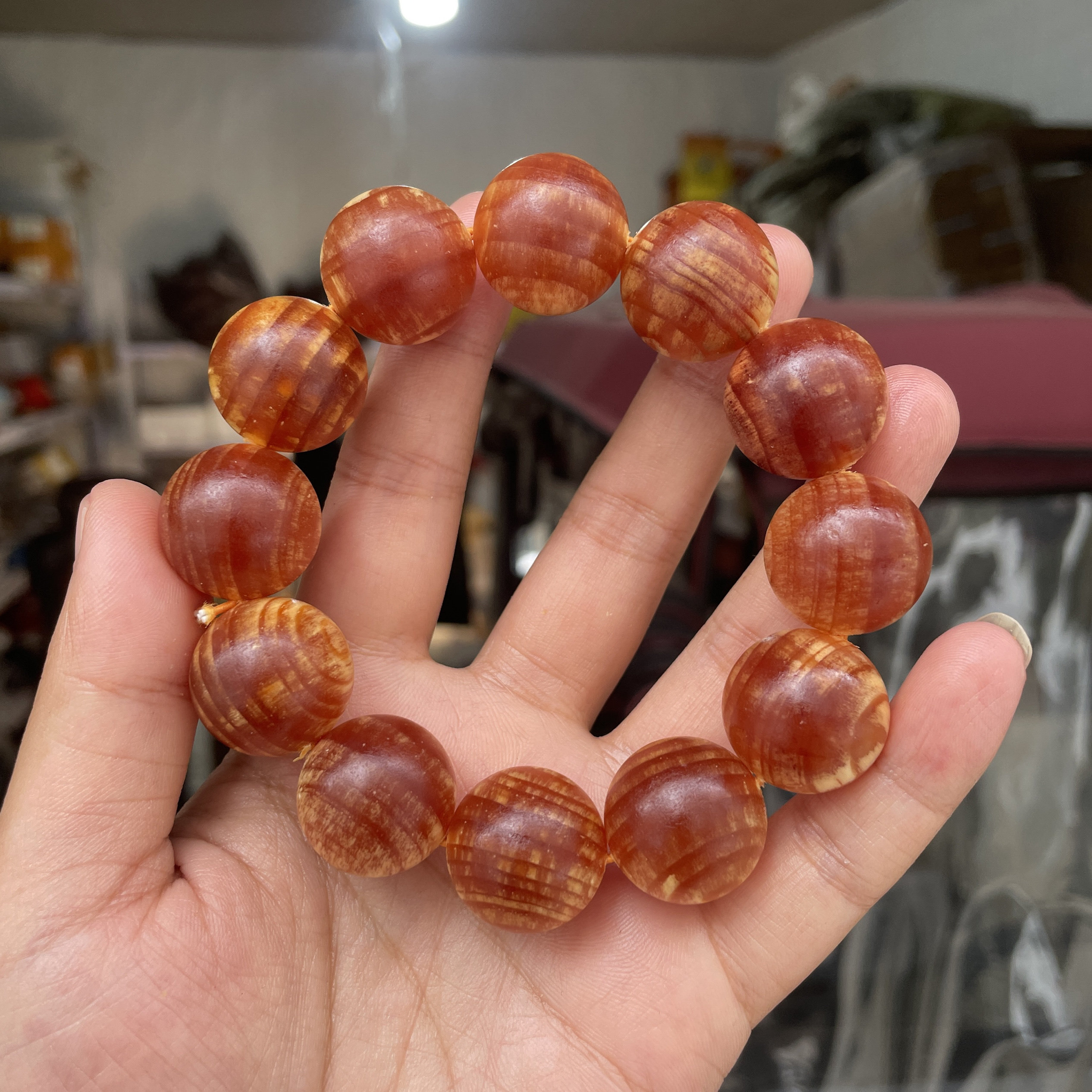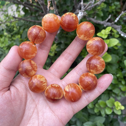 天然琥珀木手串手链松明子全油全透光文玩精品花纹