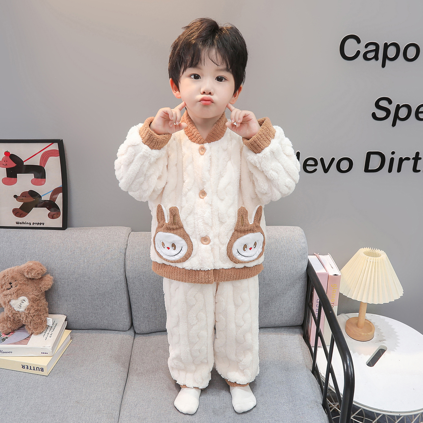 女童睡衣套装冬季珊瑚绒加厚保暖