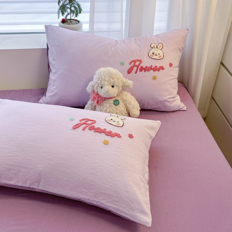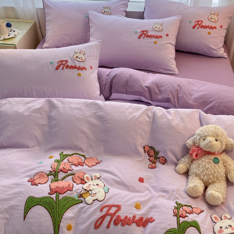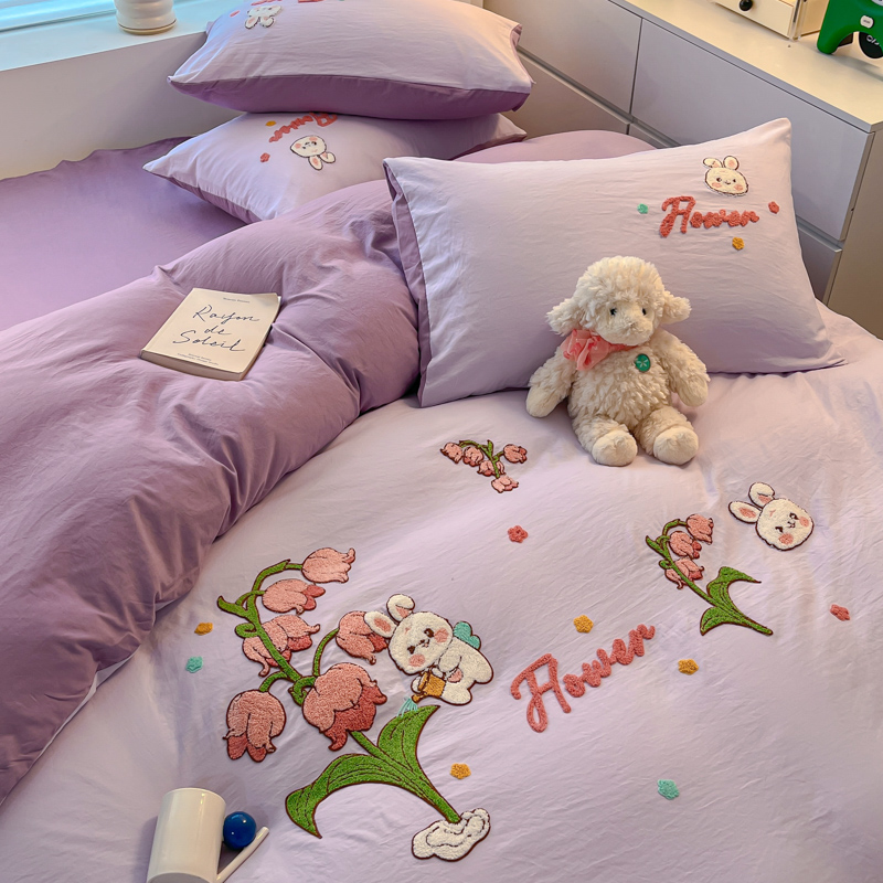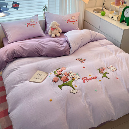 2024新款毛巾绣全棉纯棉四件套床单被套水洗棉学生宿舍床上三件套
