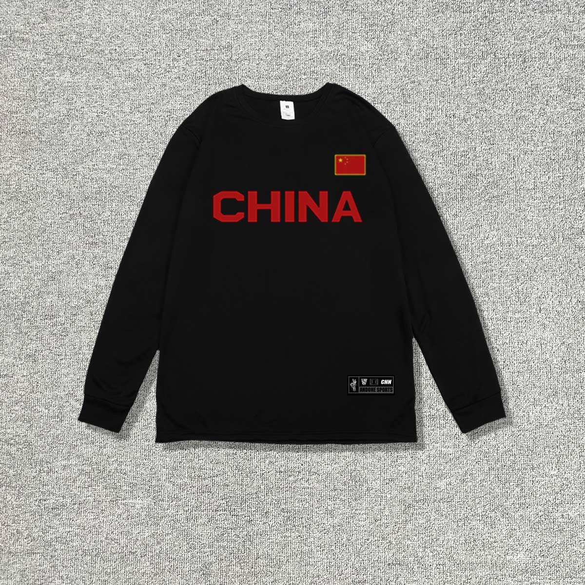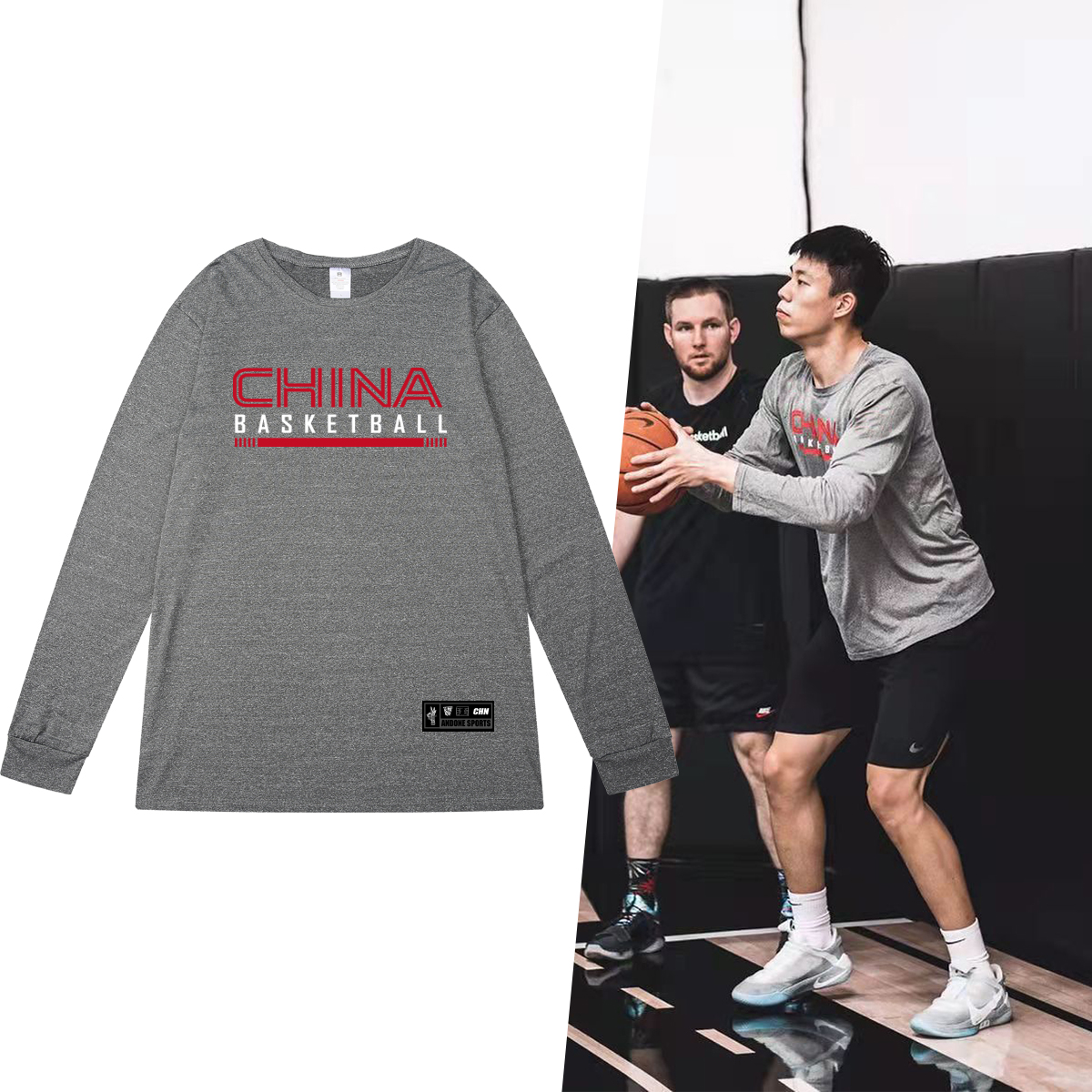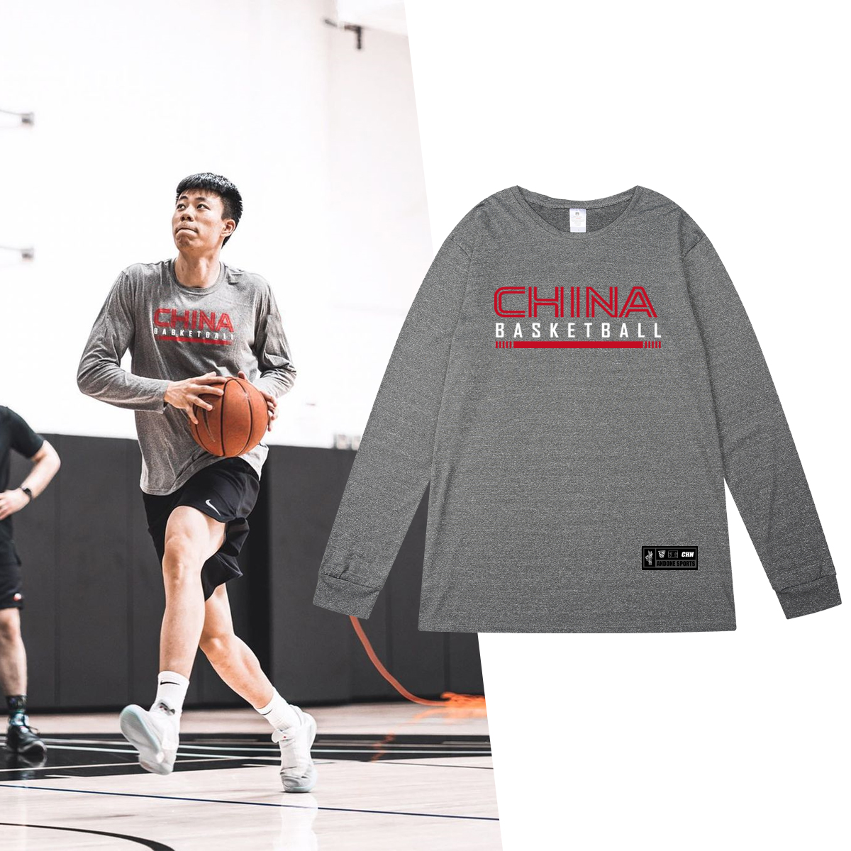 篮球运动长袖T恤CHN高弹速干投篮服宽松男篮训练服透气跑步健身男