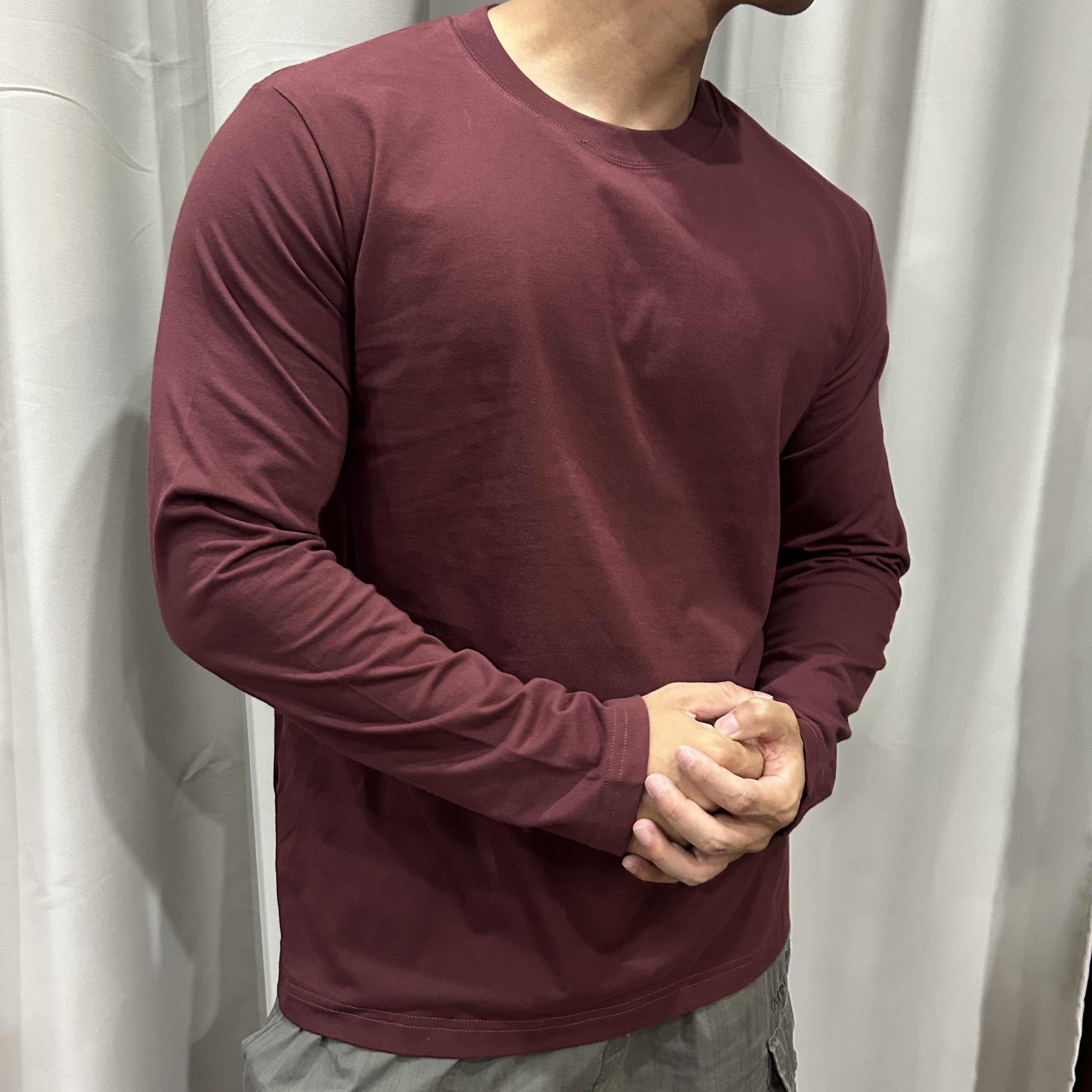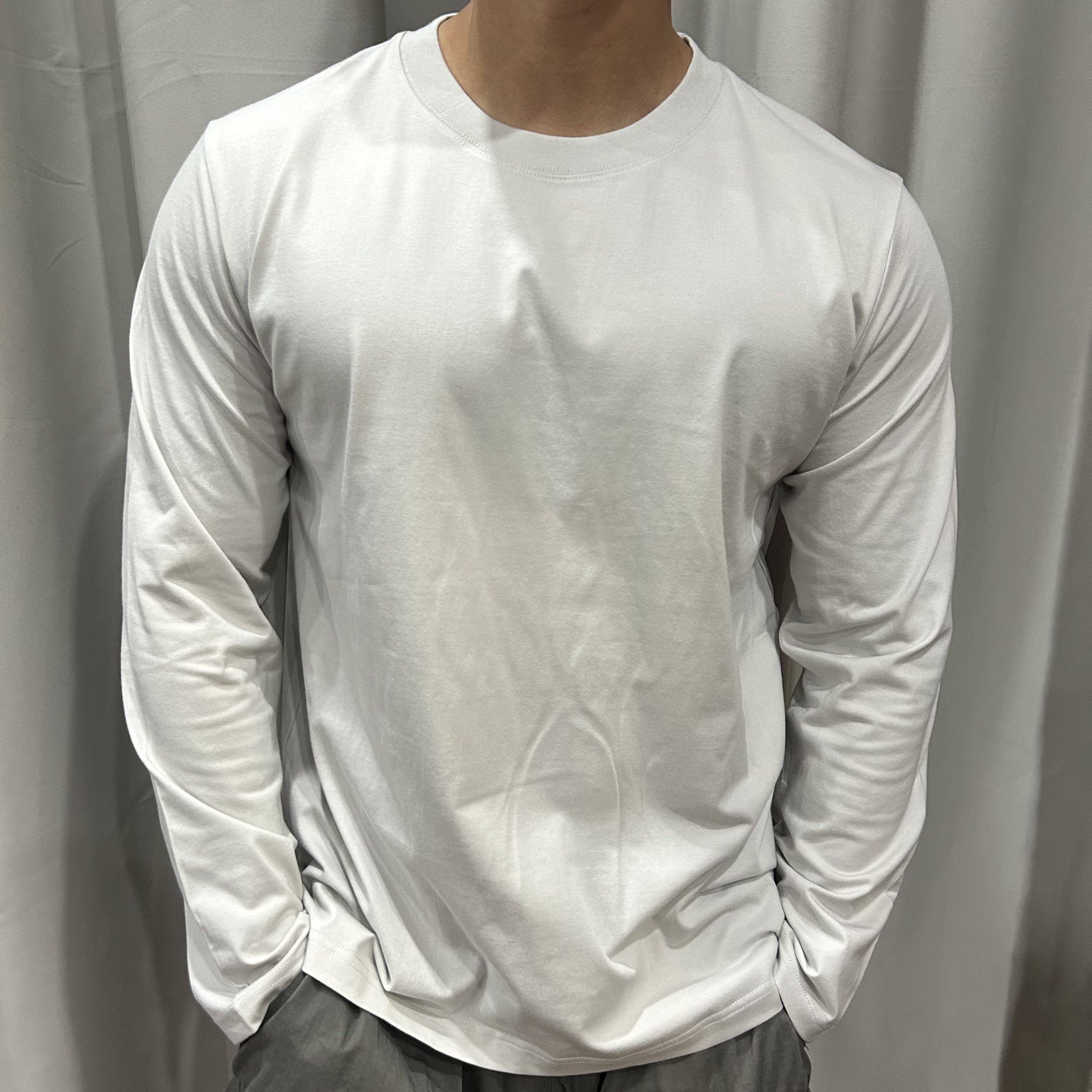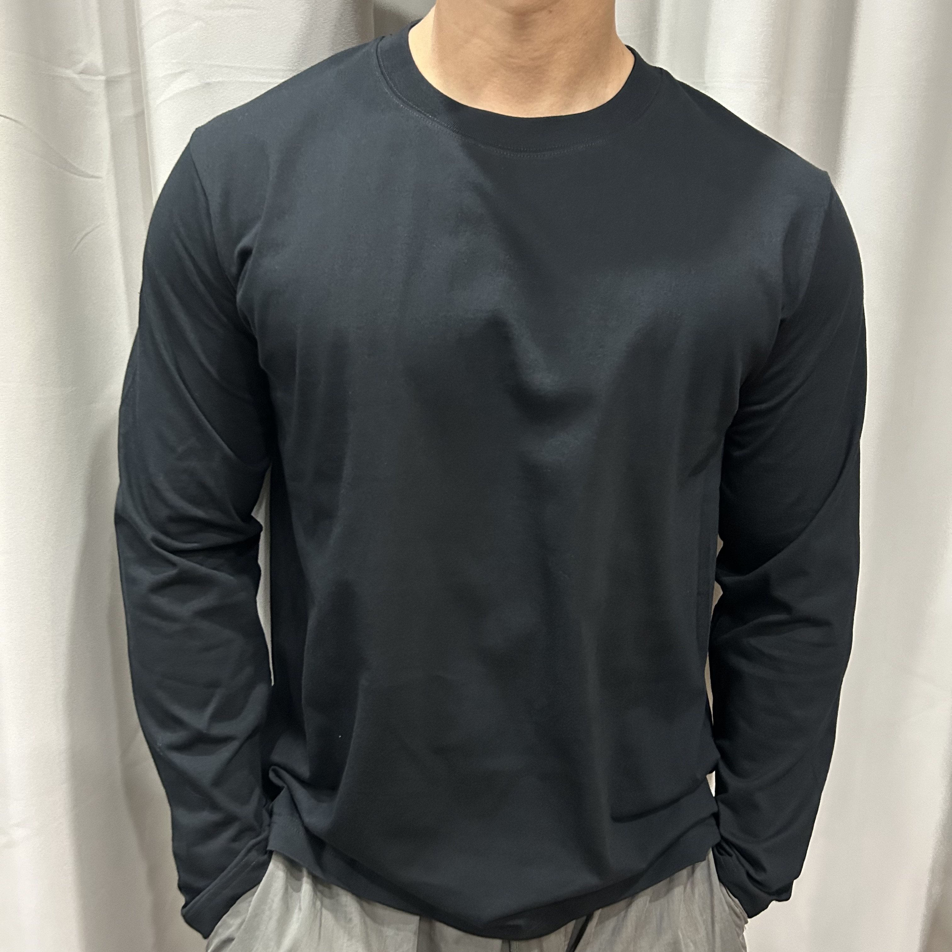 秋季纯棉圆领长袖t恤男简约修身休闲百搭运动健身打底衫体恤上衣