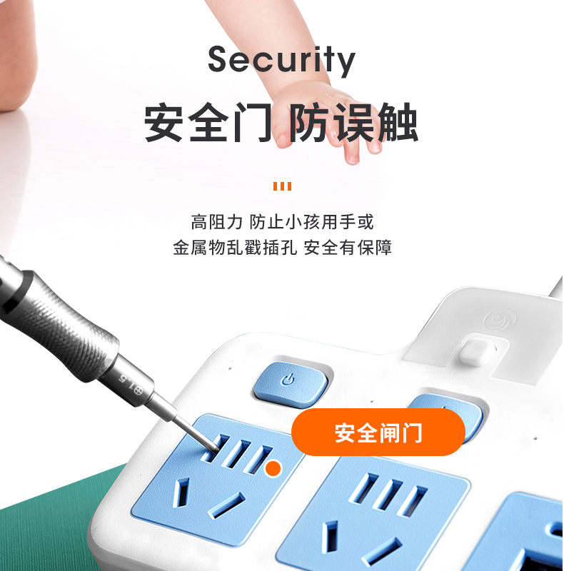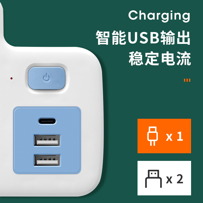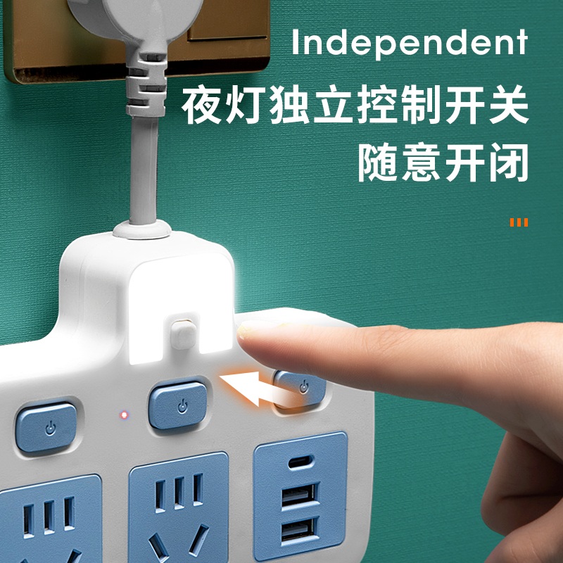 插座转换器家用一转多插位带USB夜灯插排短线多孔面板扩展插线板
