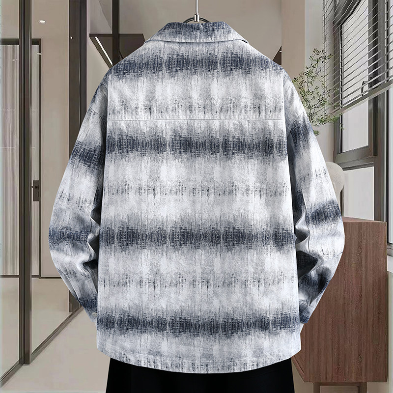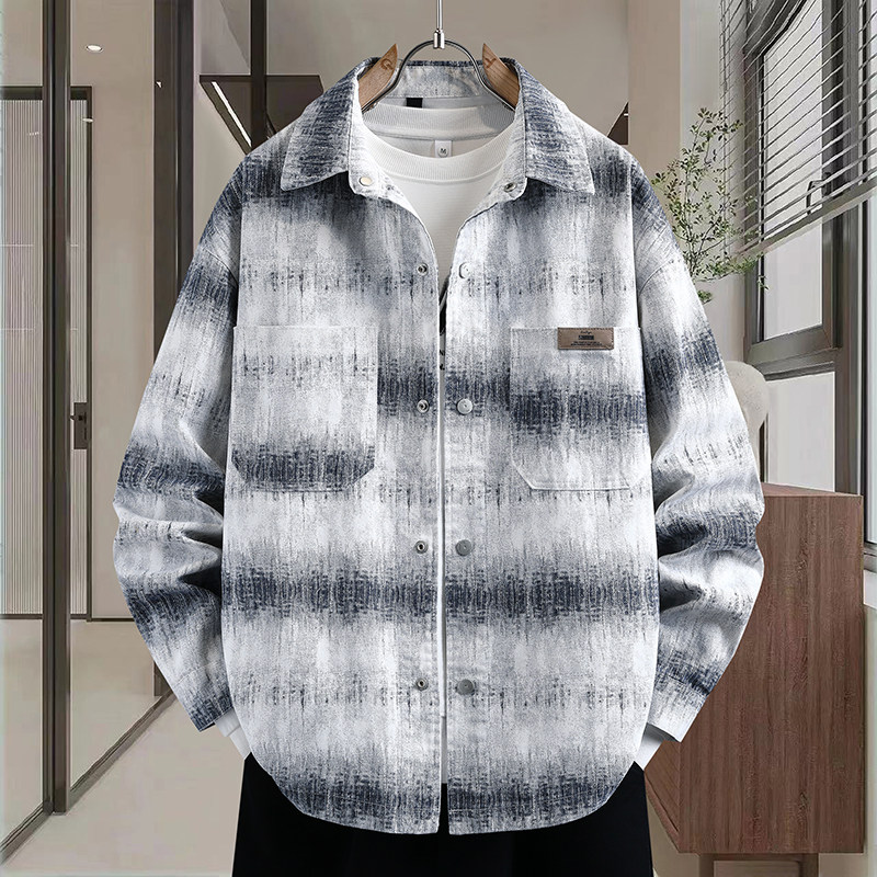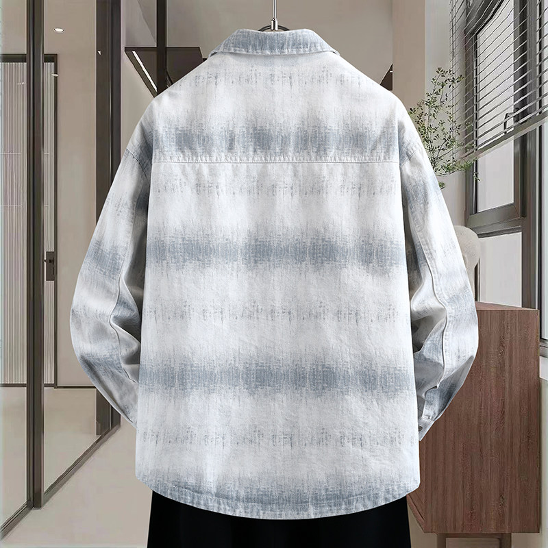 春季上新青少年韩系翻领牛仔外套渐变色扎染贴标设计男生潮牌夹克