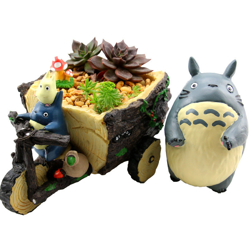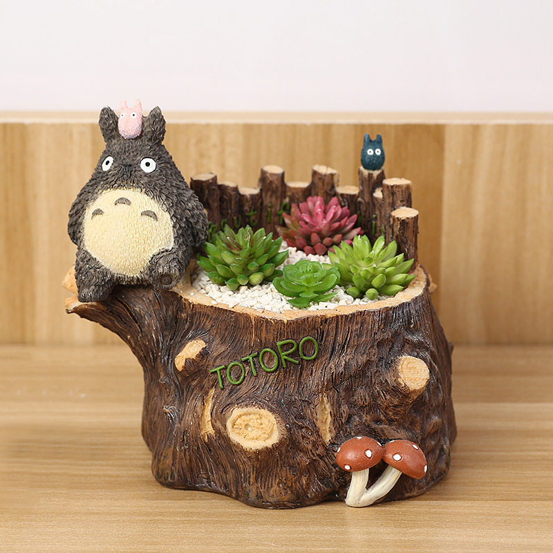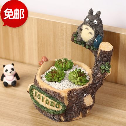 创意多肉植物树脂花盆龙猫澡盆树桩守护花盆生日礼物卡通动物花盆