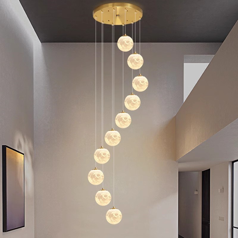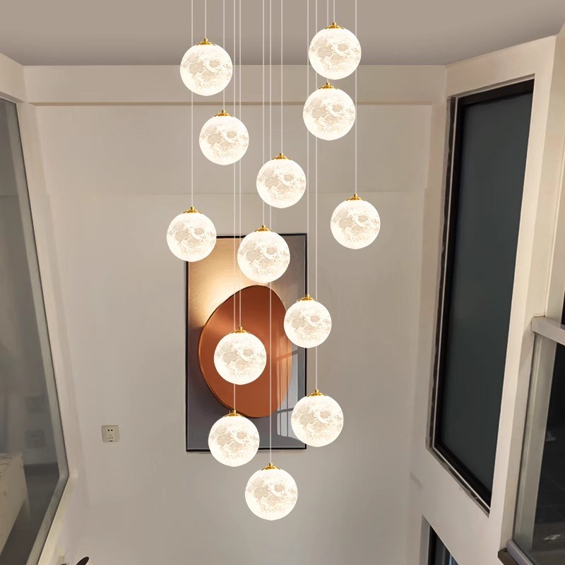 3D打印月球楼梯吊灯长吊灯复式楼楼梯间别墅氛围客厅挑空长线吊灯
