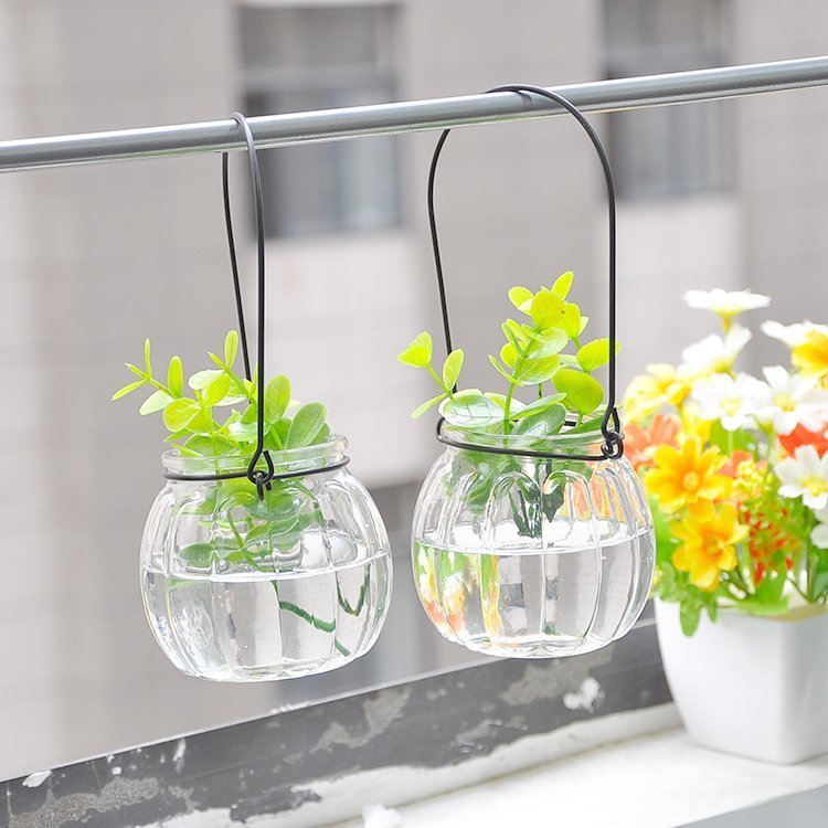悬挂式透明玻璃花瓶 小南瓜吊瓶 简约水培花器室内园艺家居装饰瓶