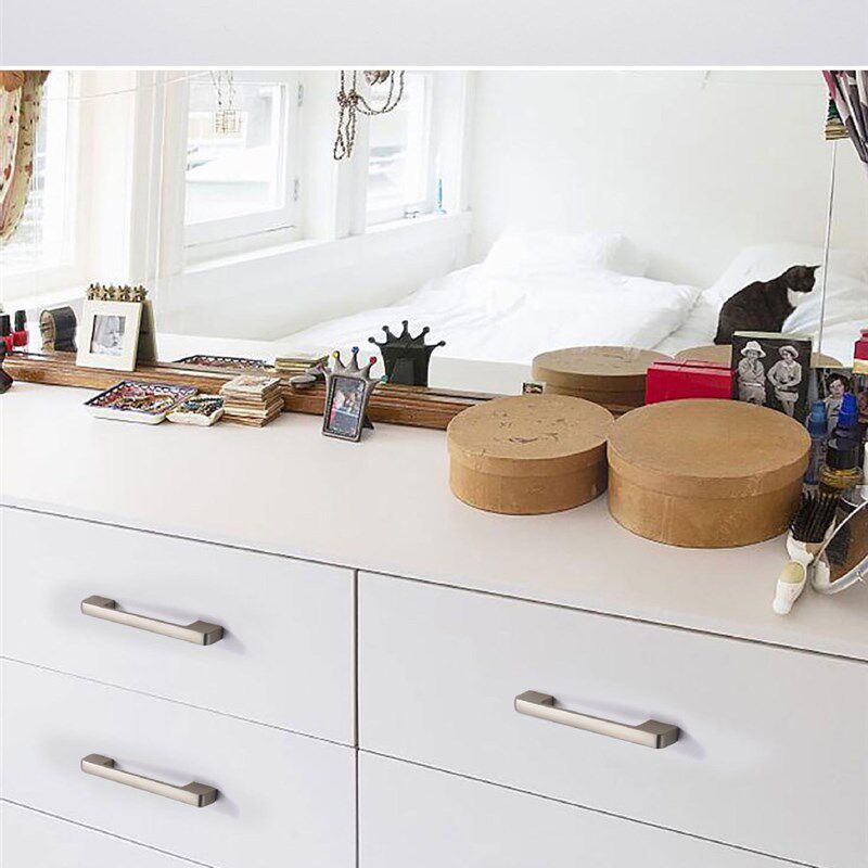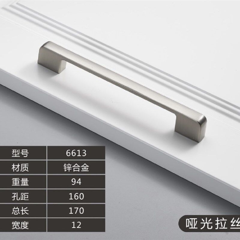 哑光拉丝银衣柜门拉手锌合金128孔距浅色橱柜抽屉把手定制五金件