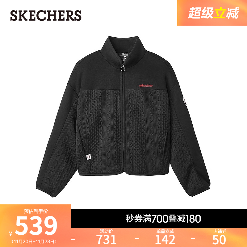 斯凯奇2025秋冬新款女棉外套棒球服夹克立领休闲运动夹克上衣外套