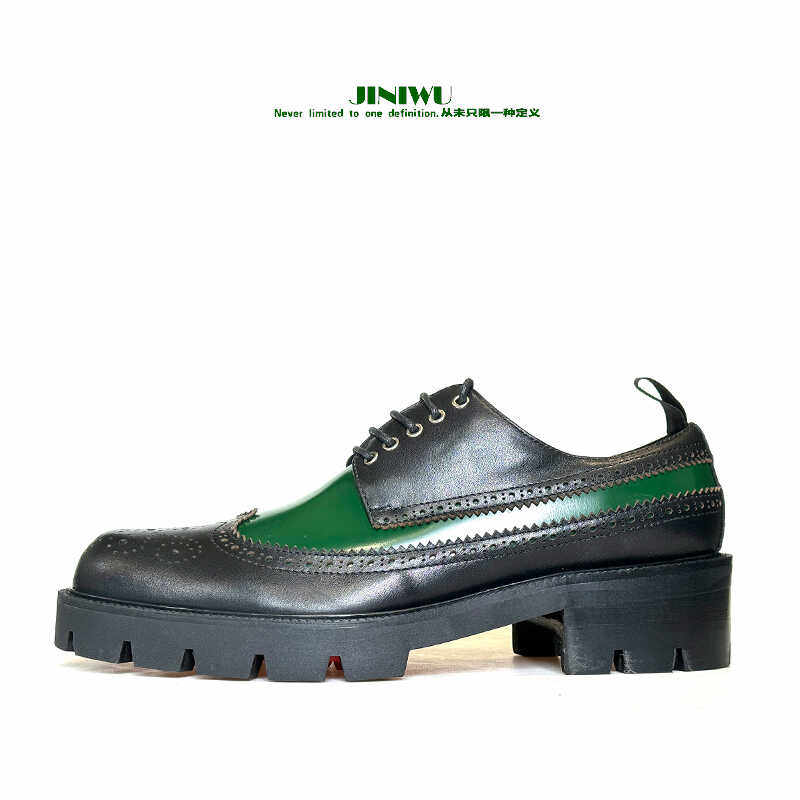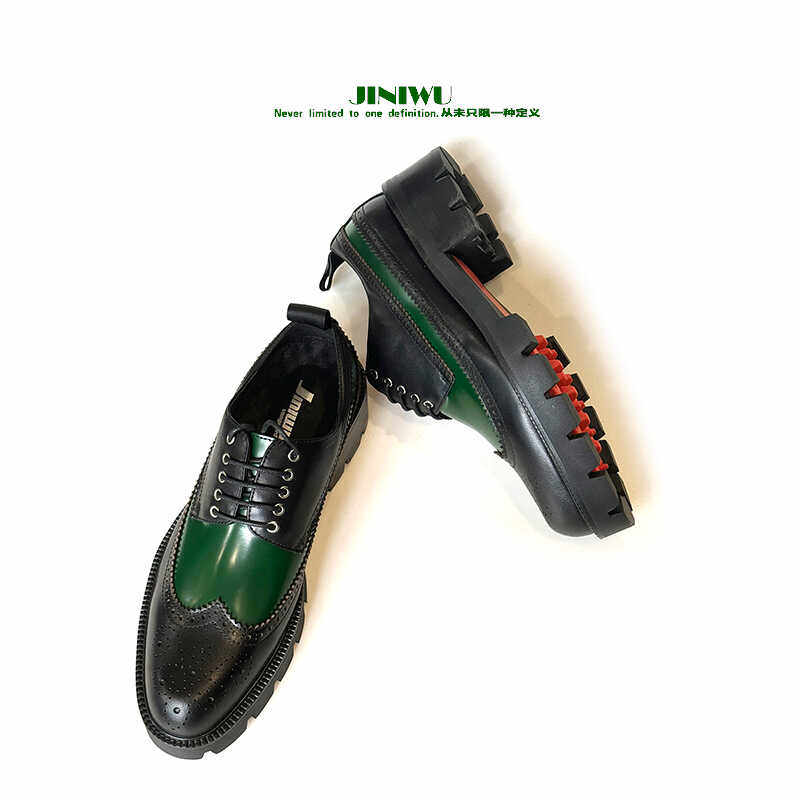 JINIWU吾倪季2025布洛克厚底皮鞋男士休闲雕花头层牛皮增高男鞋