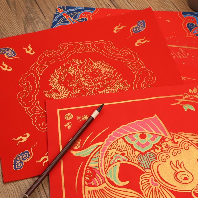 100张 加厚空白福字对联专用纸斗方手写春联高档蜡染万年红宣纸
