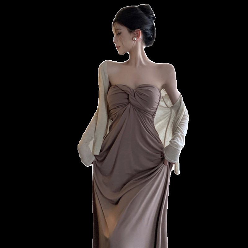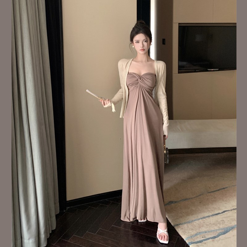 孕妇春装连衣裙2025女夏季宽松洋气抹胸长裙气质显U瘦披肩外套套