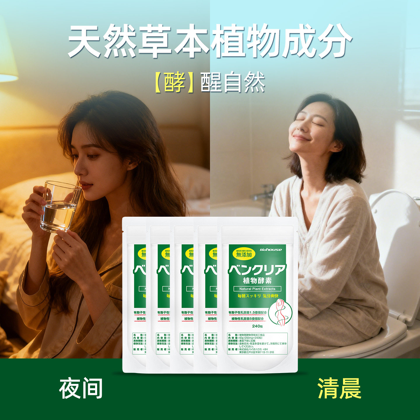 biohouse日本植物便卜益生菌果蔬酵素膳食纤维非肠清噗噗片【5袋