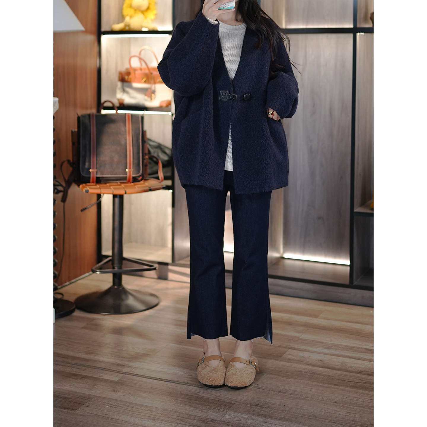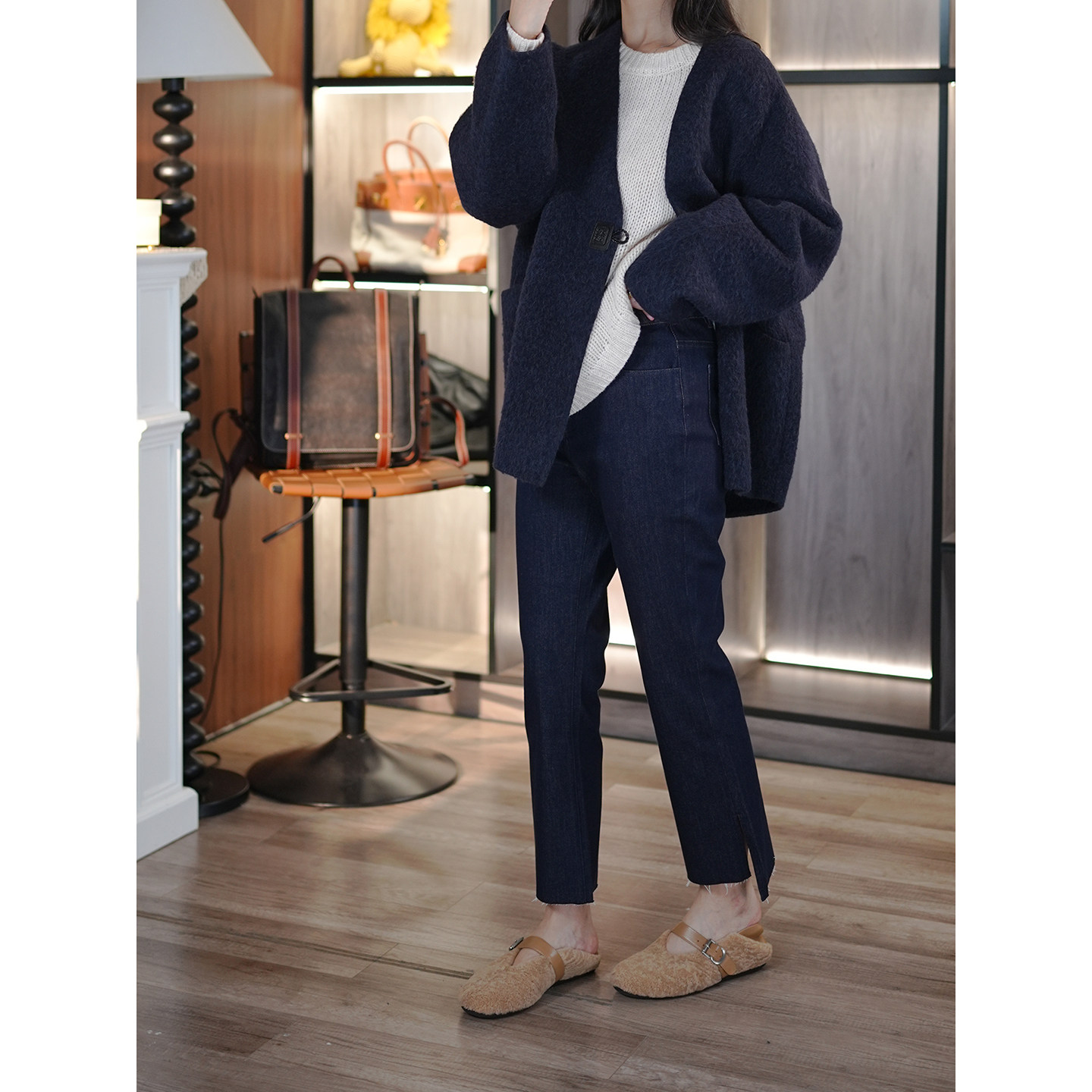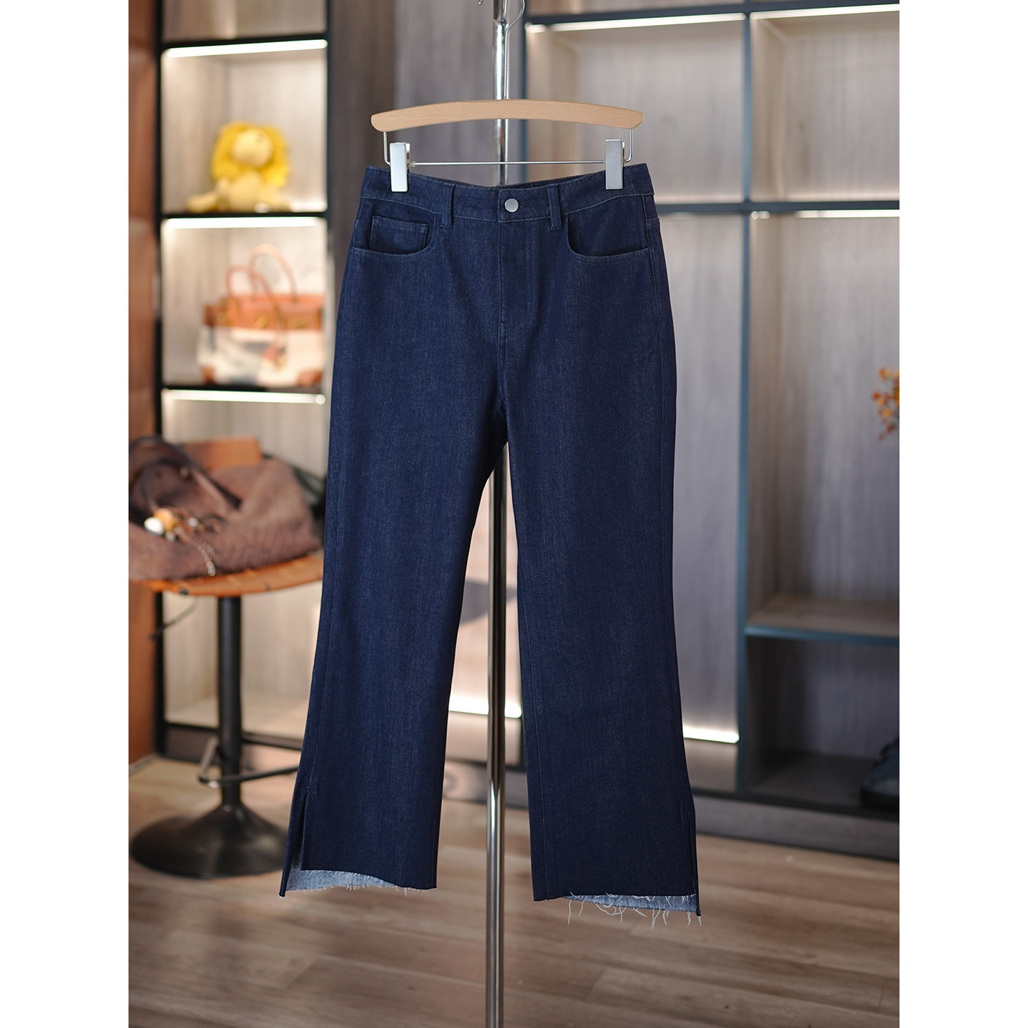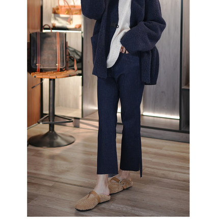 6号衣橱 l 小狗出品 土耳其弹力棉抓绒裤口开衩微喇9分百搭牛仔裤