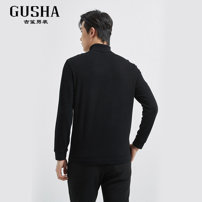 【山羊绒】古鲨黑色轻奢卫衣男 轻奢高领简约保暖长袖T恤2025冬