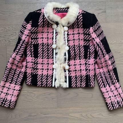 外贸原单日单67羊毛混纺粉色毛毛边超可爱高腰短款毛呢短外套小码