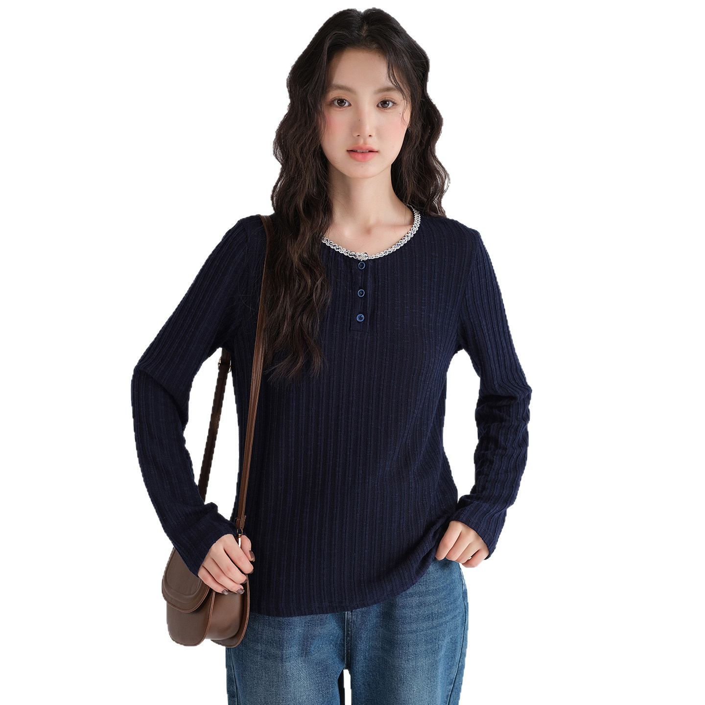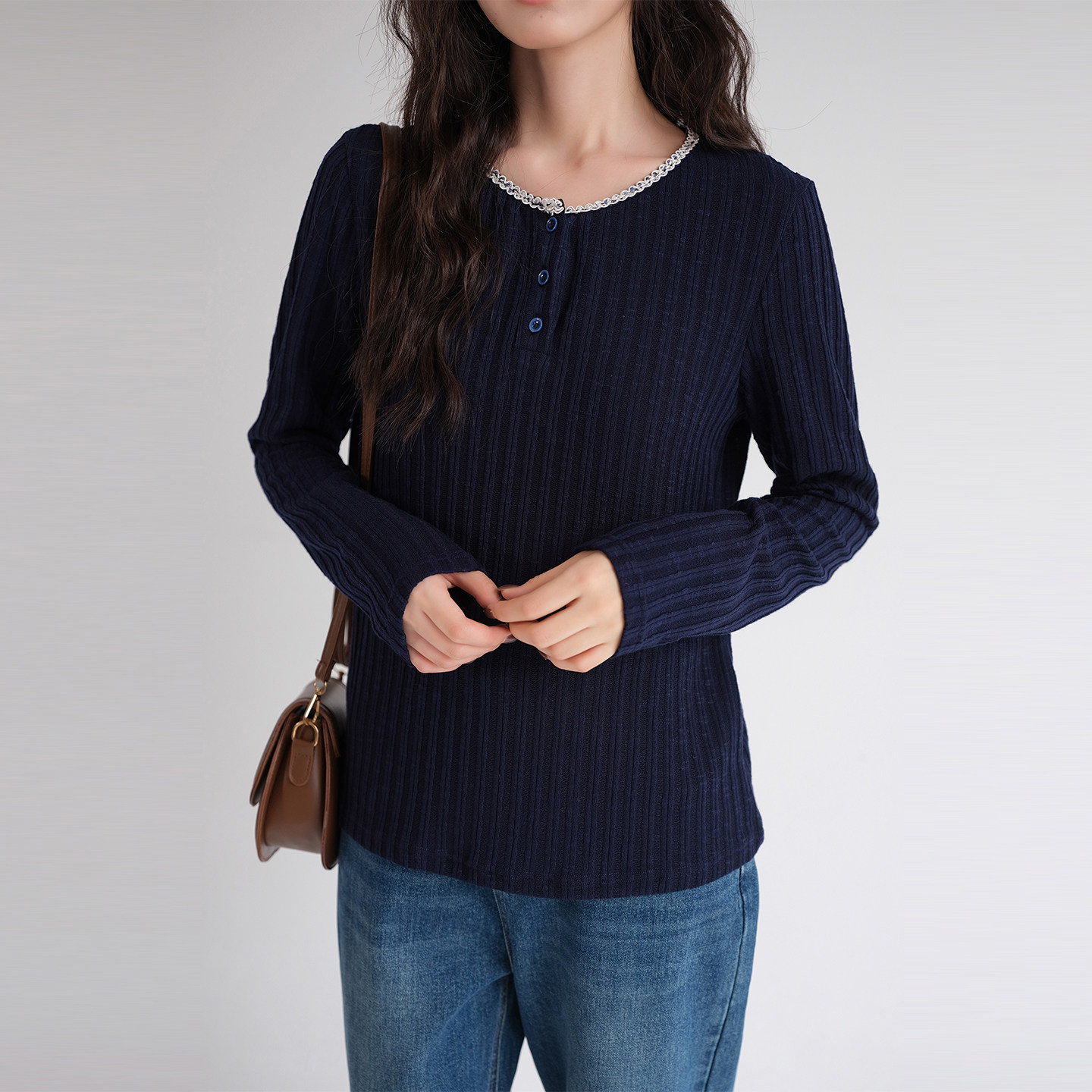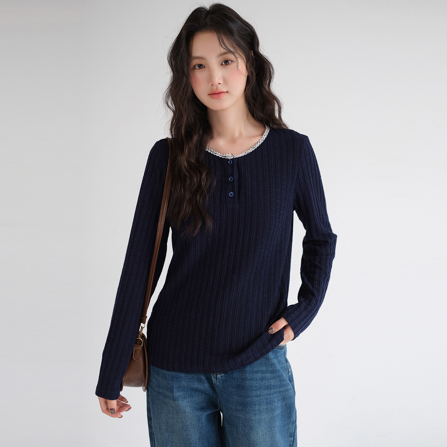 蓝若水百搭宽松显瘦减龄上衣