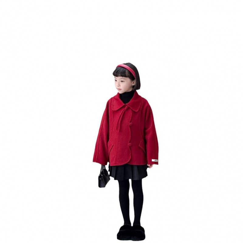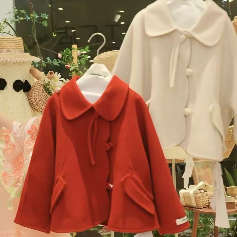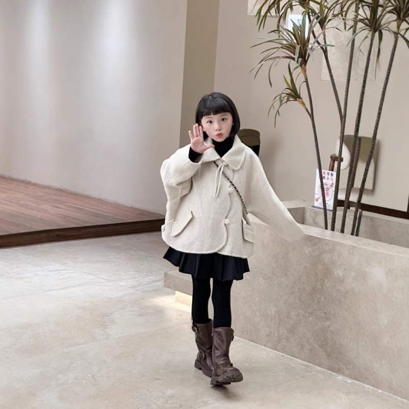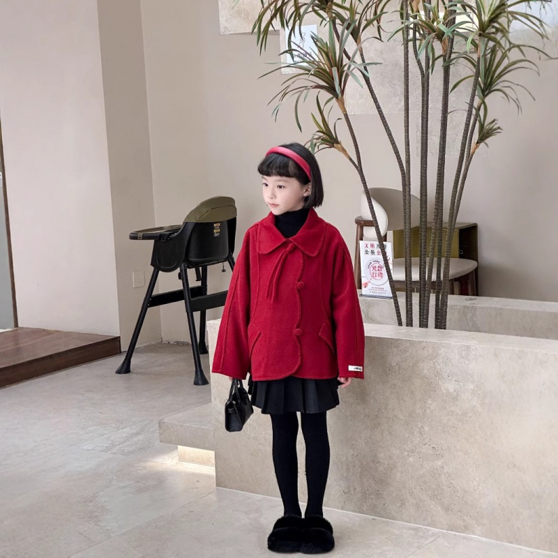 英伦新款深秋冬上衣绵羊毛女童毛呢不规则短款双面羊毛大衣650113
