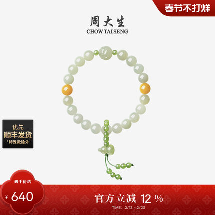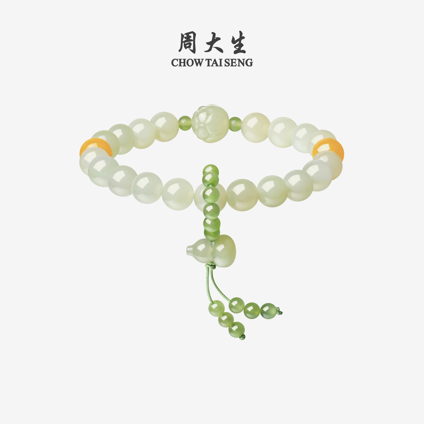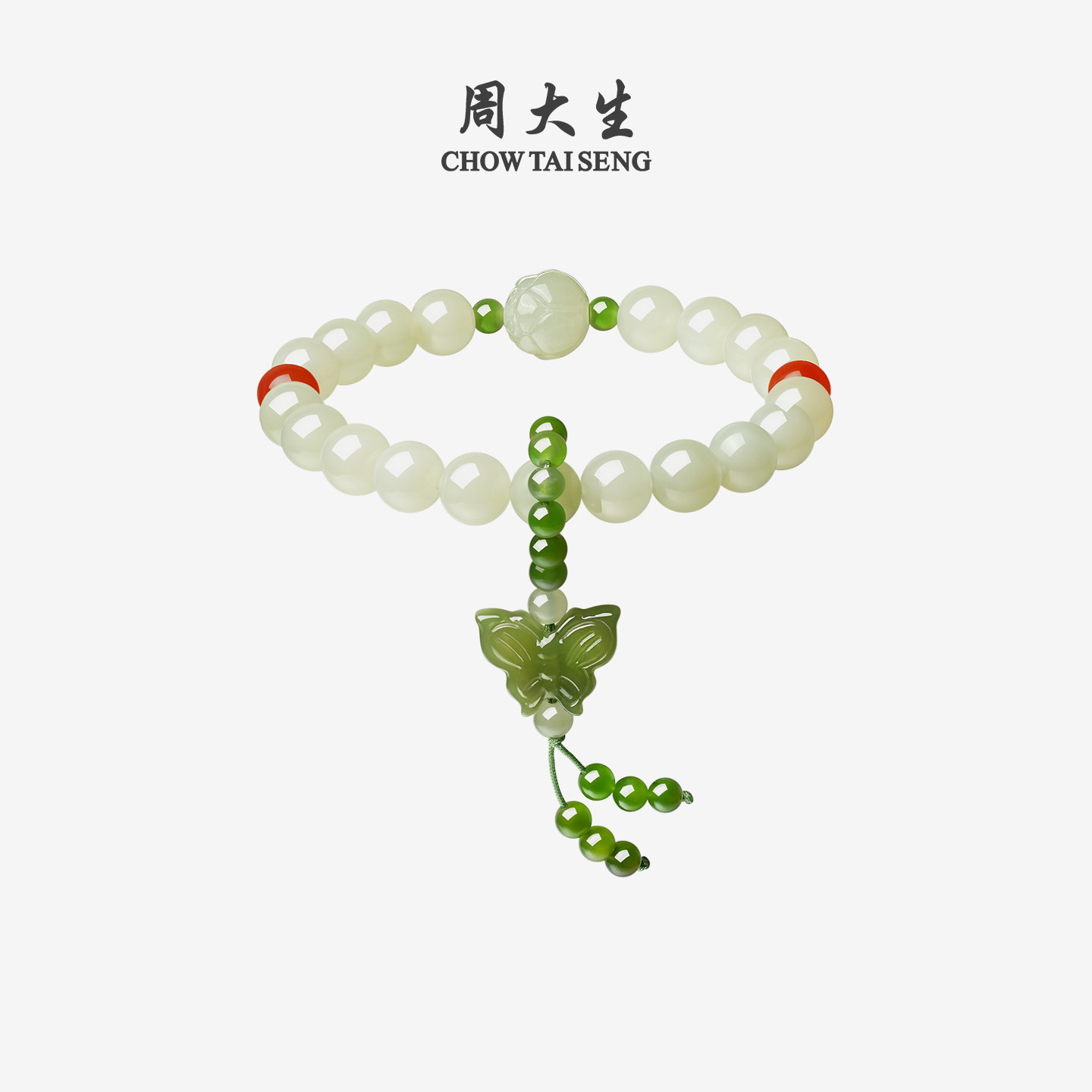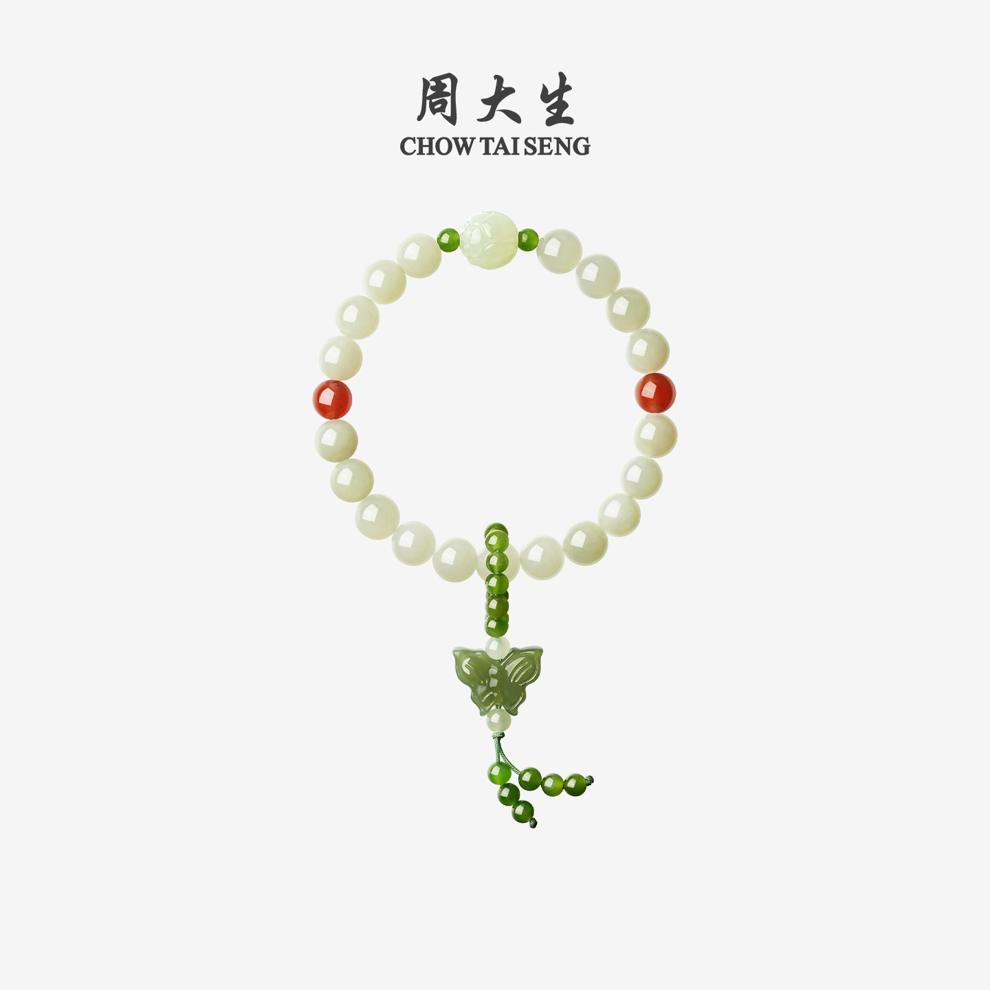 周大生和田玉手串女葫芦蝴蝶手链琥珀手饰莲花珠情人节礼物送女友
