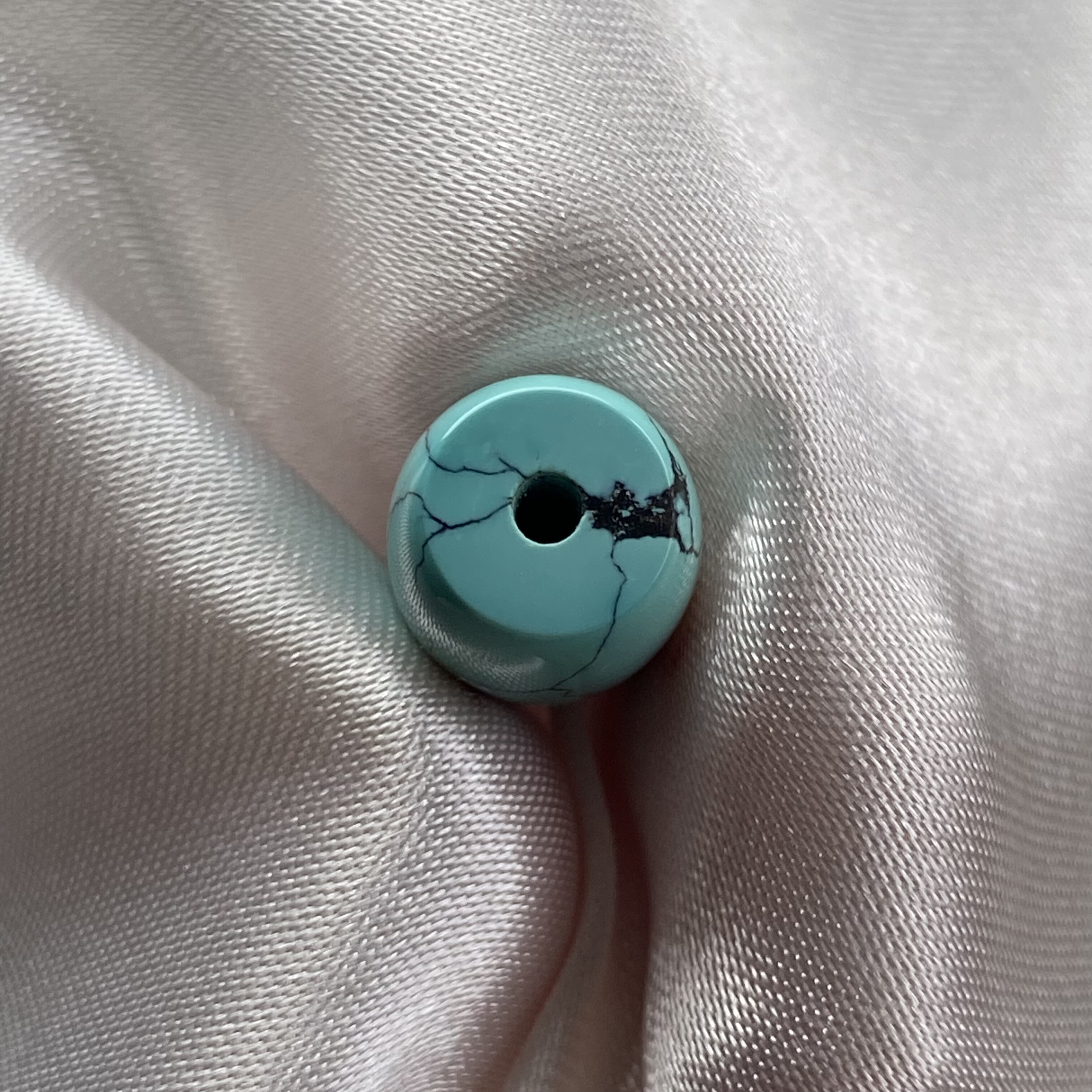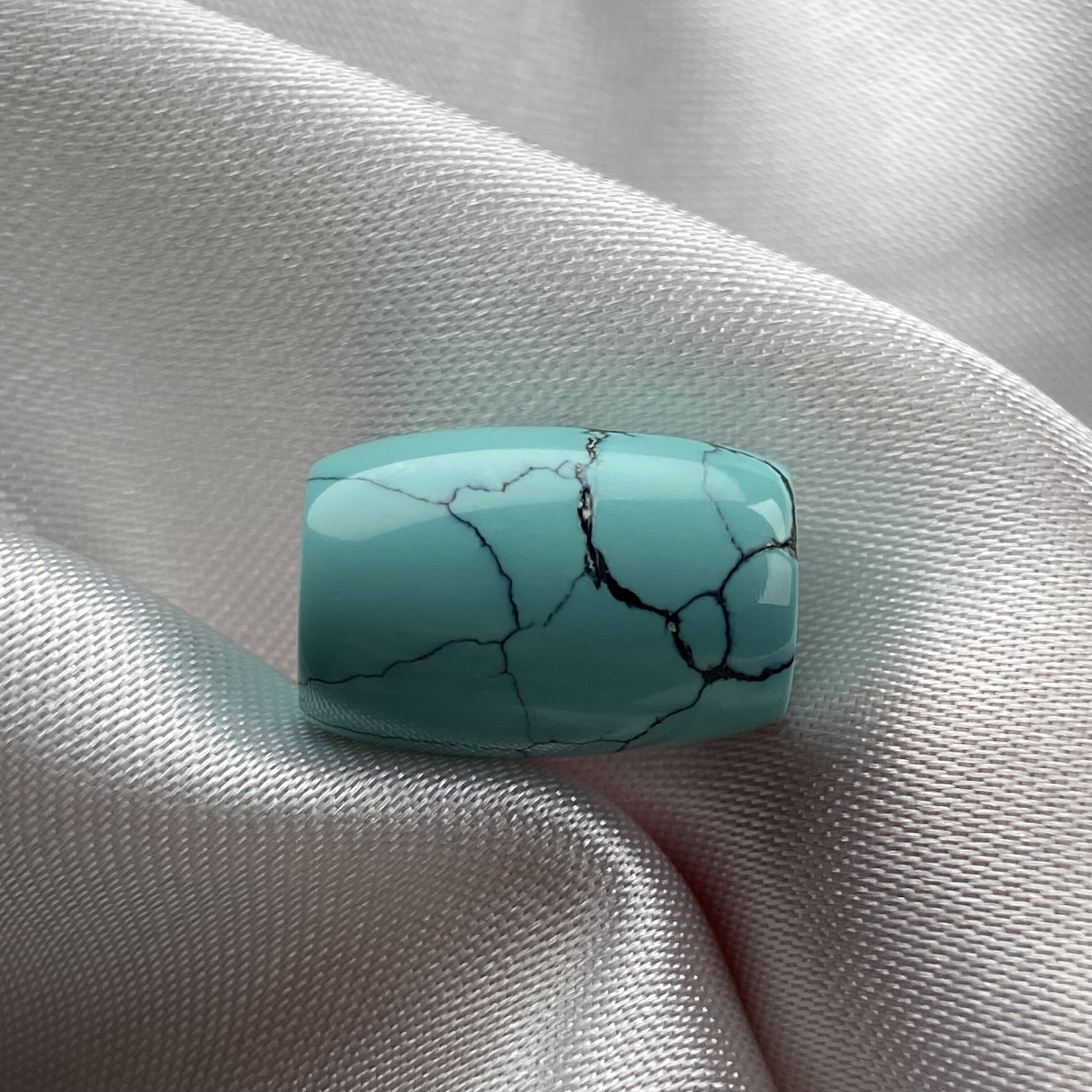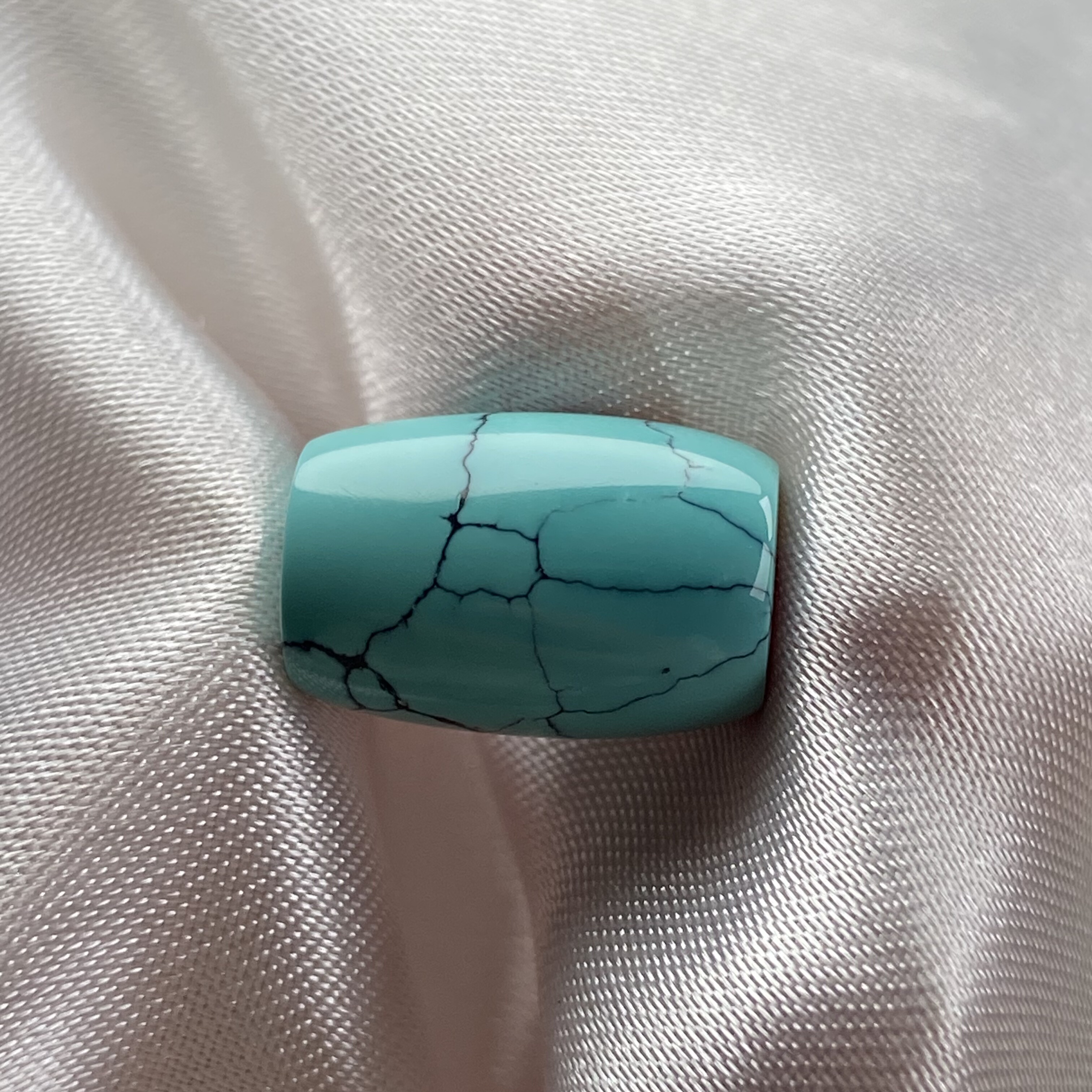 湖北天然原矿瓷釉级绿松石水草纹桶珠直径9.5mm长13.9mm 顶珠配饰