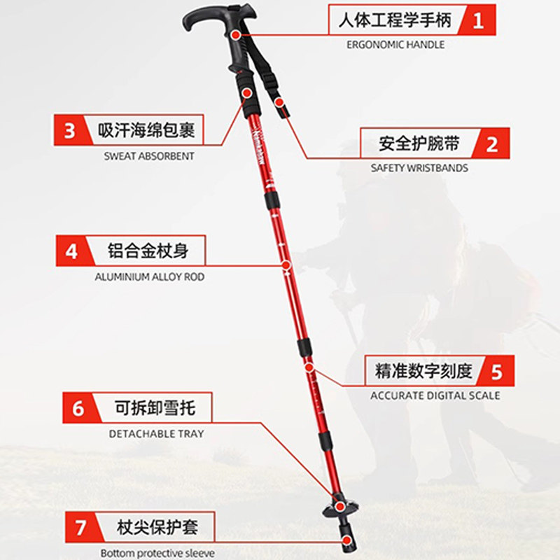 登山杖手杖超轻伸缩款铝合金拐杖户外多功能男女徒步爬山登山装备