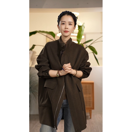 Y【叭哒不惑】爹系 山羊绒绵羊毛立领毛呢外套女宽松百搭大衣