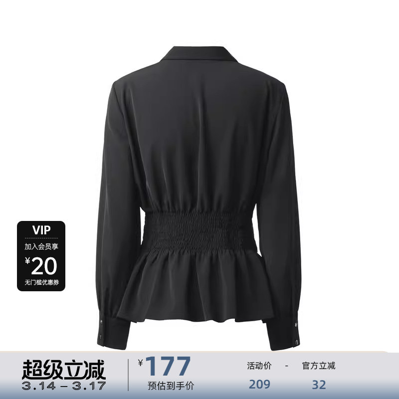 sdeer圣迪奥女装OL风翻领抽褶垂坠雪纺长袖衬衫S243Z0532