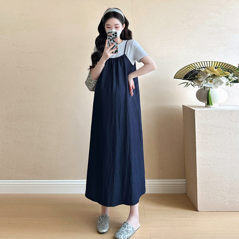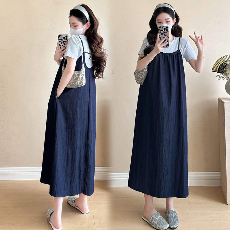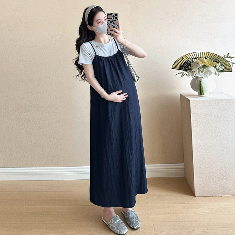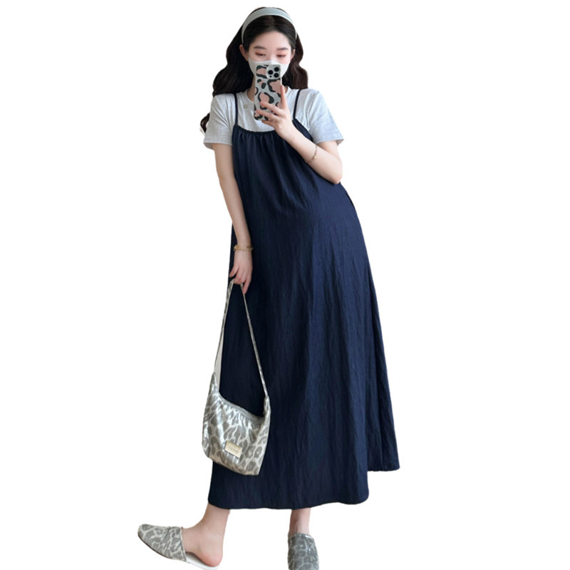 孕妇装夏天裙子两件套时尚宽松中长款吊带裙遮肚休闲怀孕期连衣裙