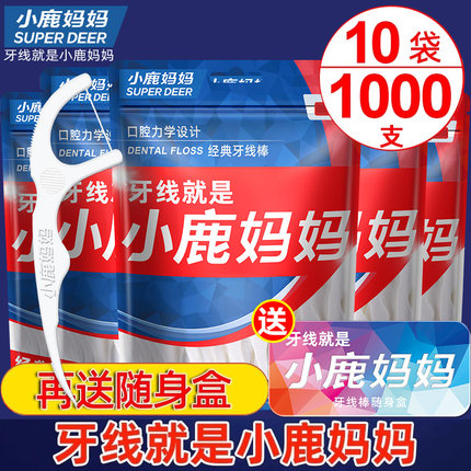 小鹿妈妈超细牙线家庭装酒店牙签线盒便携随身剔牙线棒1000支包邮