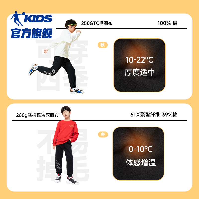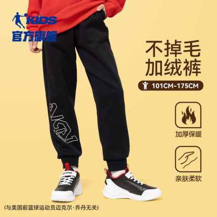 乔丹童装男童裤子加绒长裤2024秋冬装新款儿童休闲纯棉运动裤大童