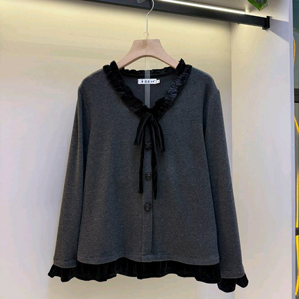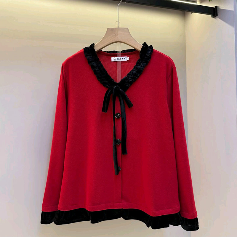 胖妹妹大码女装冬季新款2025新年款欧货木耳边领气质百搭潮女人衫