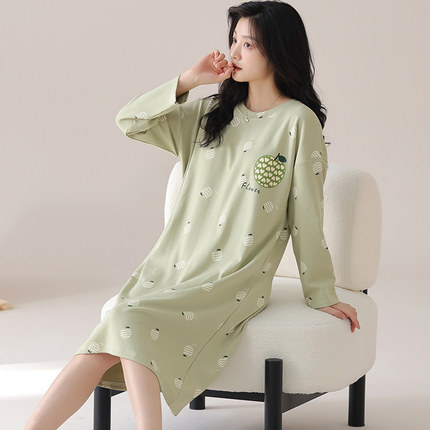 睡裙女春夏季纯棉长袖连衣裙薄款春秋韩版孕妇睡衣大码宽松特大号