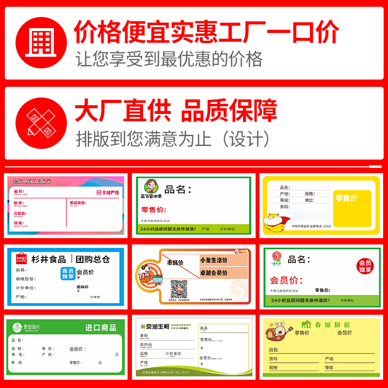 定制超市货品架标价签药品标签卡纸条码纸 不干胶贴纸 铜版纸 哑银PET 标价签价格签码研工厂