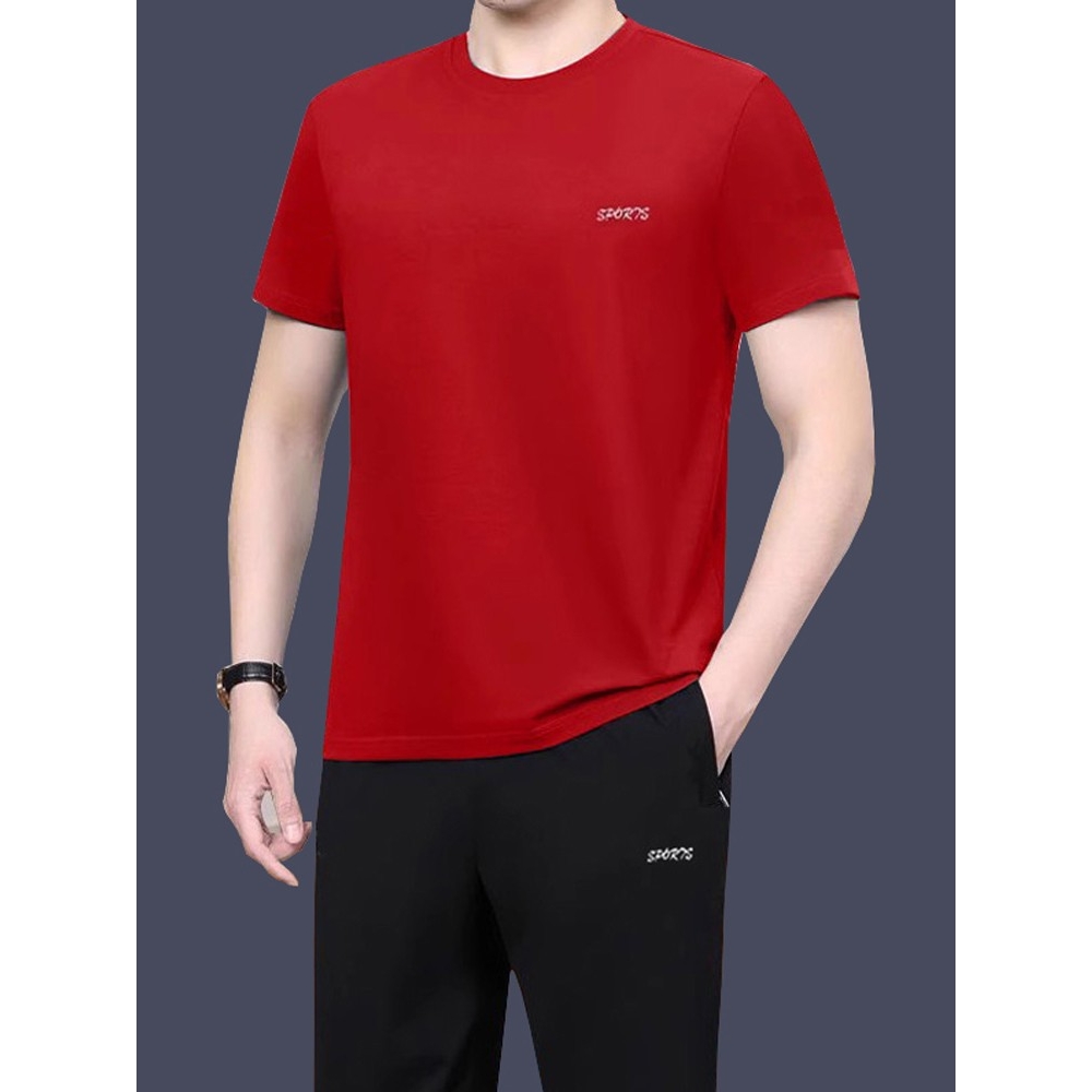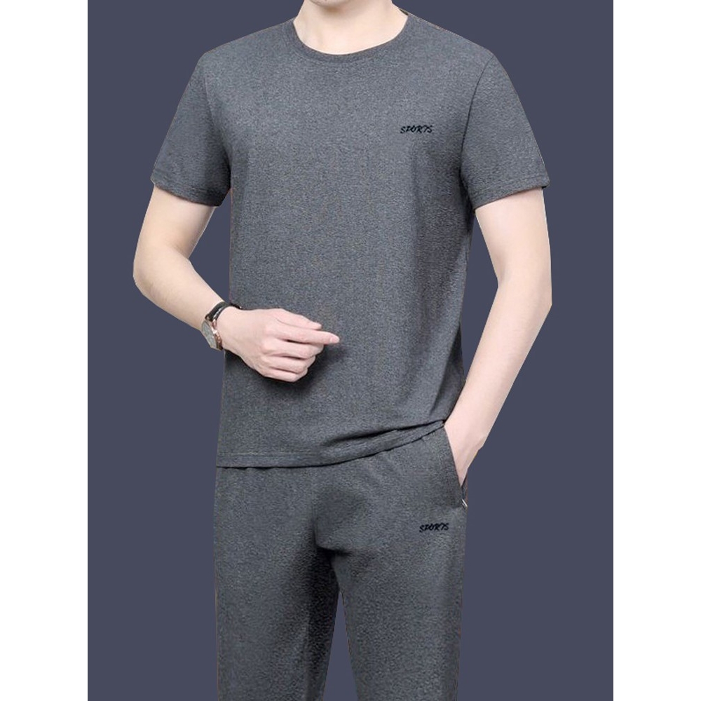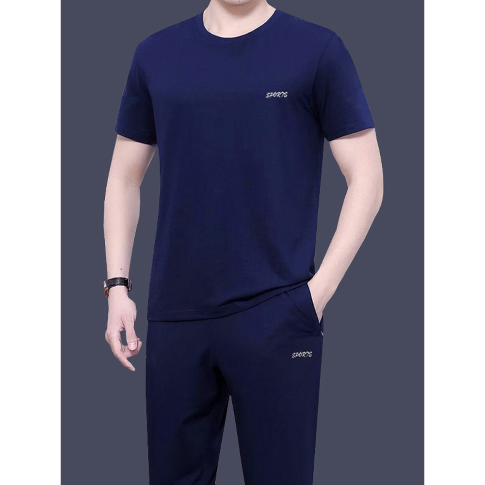 纯棉运动服套装男士夏季短袖t恤长裤韩版中年休闲短裤两三件套潮