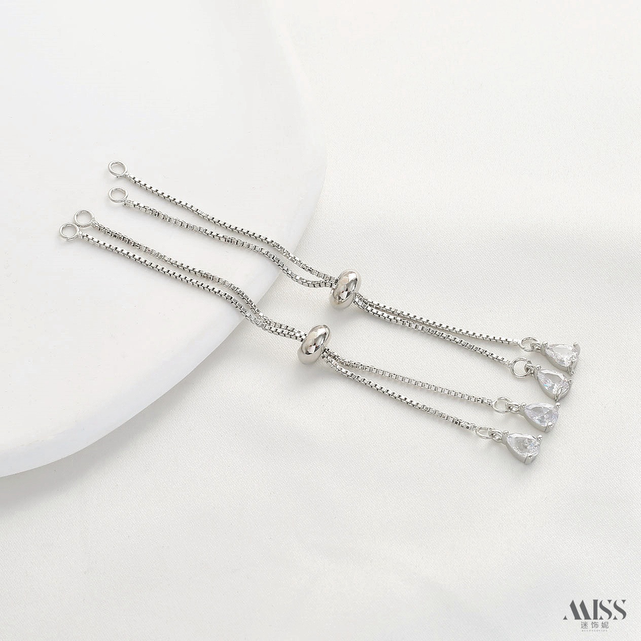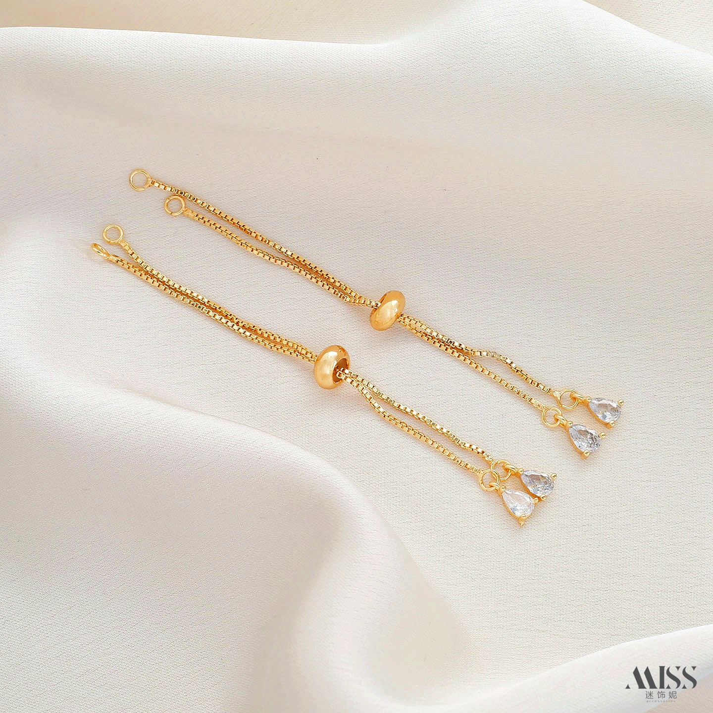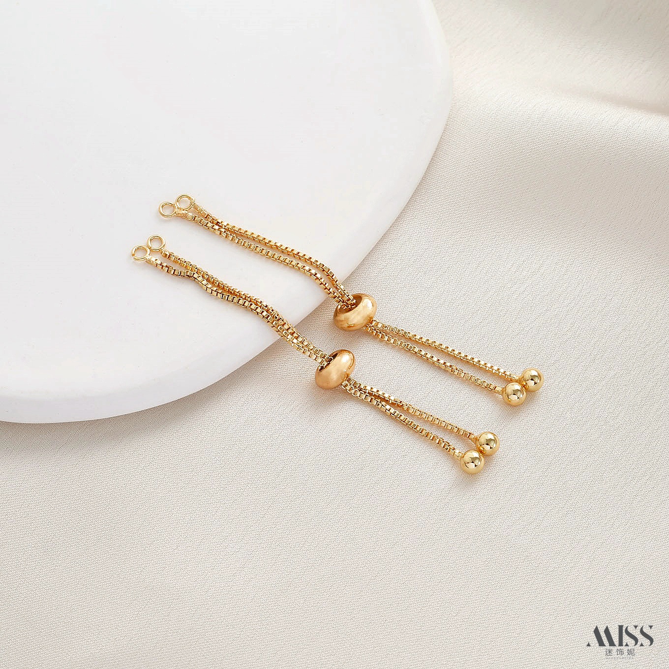 14K包金保色镀18K真金硅胶珠调节延长链吊锆石diy手链伸缩加长链